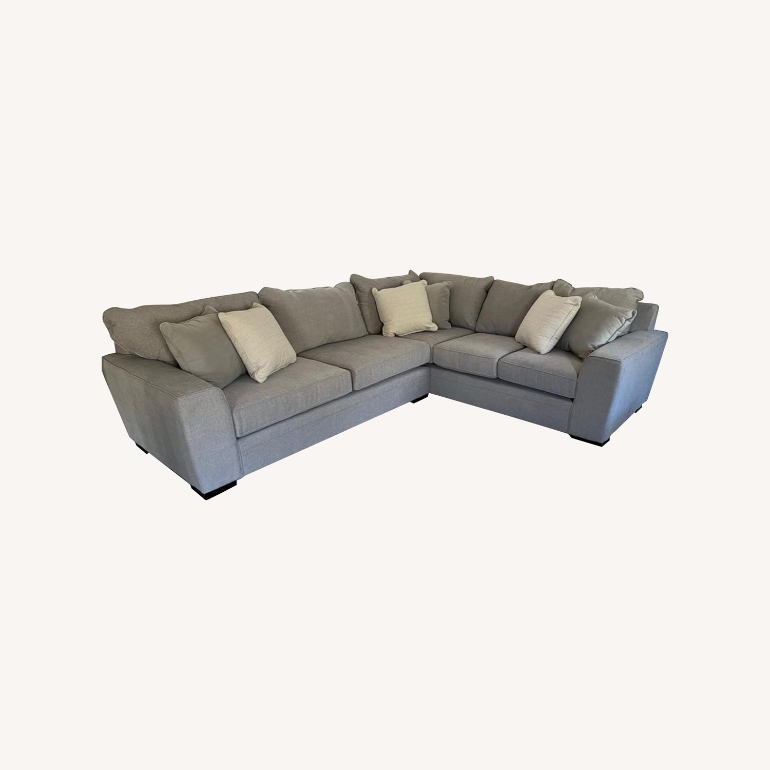 Seller's Notes:Wide seats. 5pc sectional. Chenille fabric. One cushion has a tear that is covered up by back cushion and unseen. Other than that the couch is in good condition. Covered are removable on all cushions.