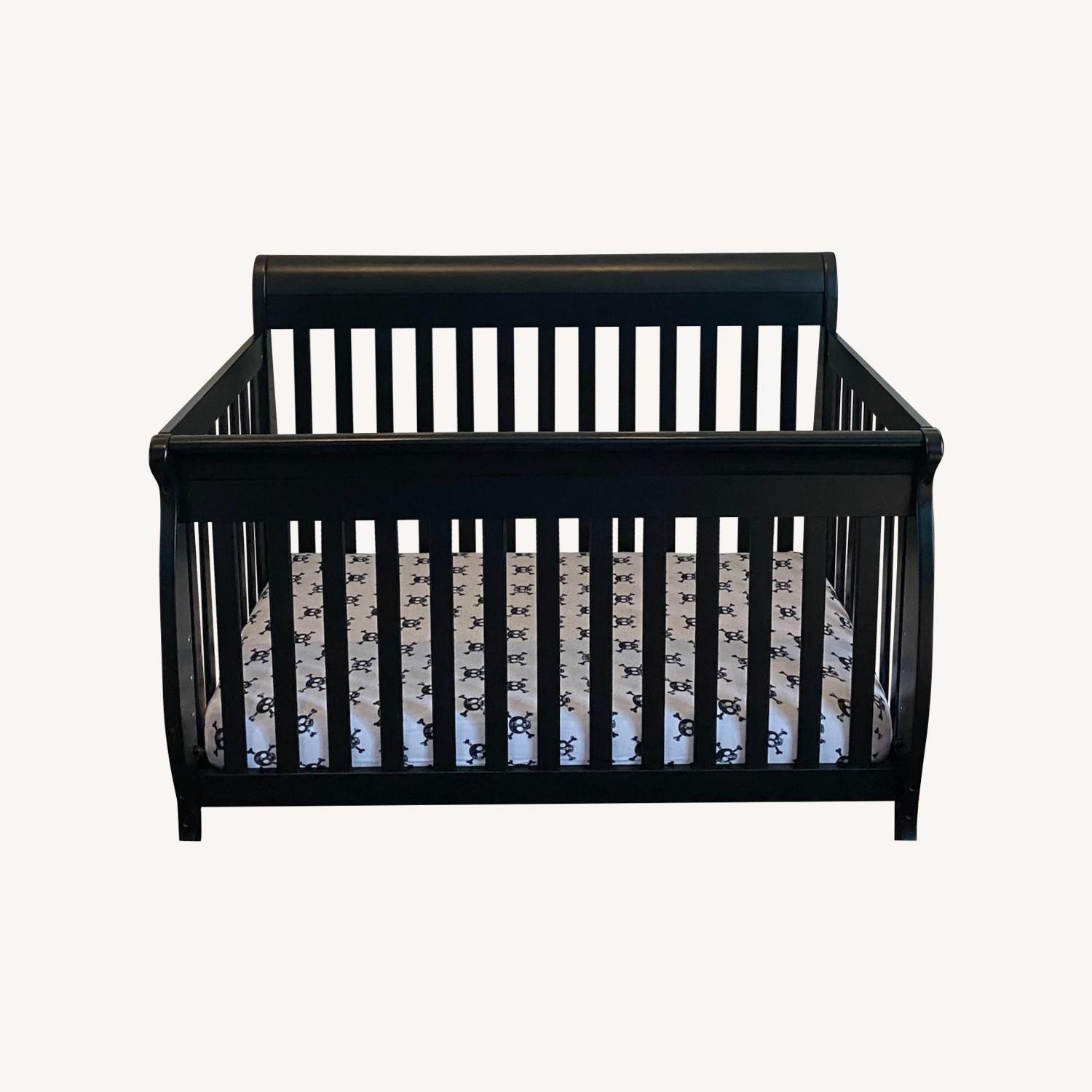Seller's Notes:Delta Children Canton 4-in-1 Crib, Black Description:MA Looking for a versatile and timeless crib? The Delta Children Canton 4-in-1 Convertible Crib in Black Ebony is a perfect choice. This crib is designed with a sleek, sleigh-style headboard and beautifully curved legs, making it a charming addition to any nursery. Key Features: Convertible Design: Transforms from a multi-positional crib to a toddler bed, daybed, and full-size bed (conversion kits for toddler guard and full-size bed sold separately). Sturdy Construction: Made from strong and sturdy wood for durability. Adjustable Mattress Heights: 3 position mattress height adjustments for your growing baby. Safety Certified: JPMA certified, tested for lead and other toxic elements, meeting or exceeding CPSC and ASTM safety standards. Easy Assembly: Simple to put together with included instructions. Important Notes: Mattress NOT included. Conversion kit for toddler guard NOT included (available separately on Delta Children’s website). Condition: Gently used with some marks and scuffs (see photos). Additional Info: