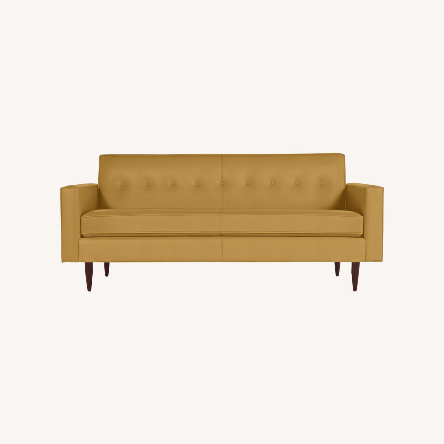 Seller's Notes:DWR Bantam 73" sofa, woven fabric in Butter Yellow.