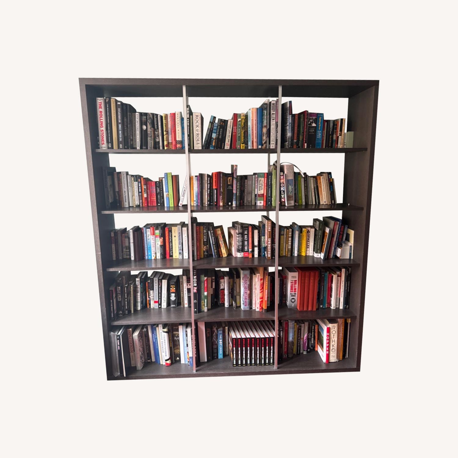 Seller's Notes:Dark brown book case/shelves from DWR. Open back, holds many books. Good condition, some small scratches at bottom.