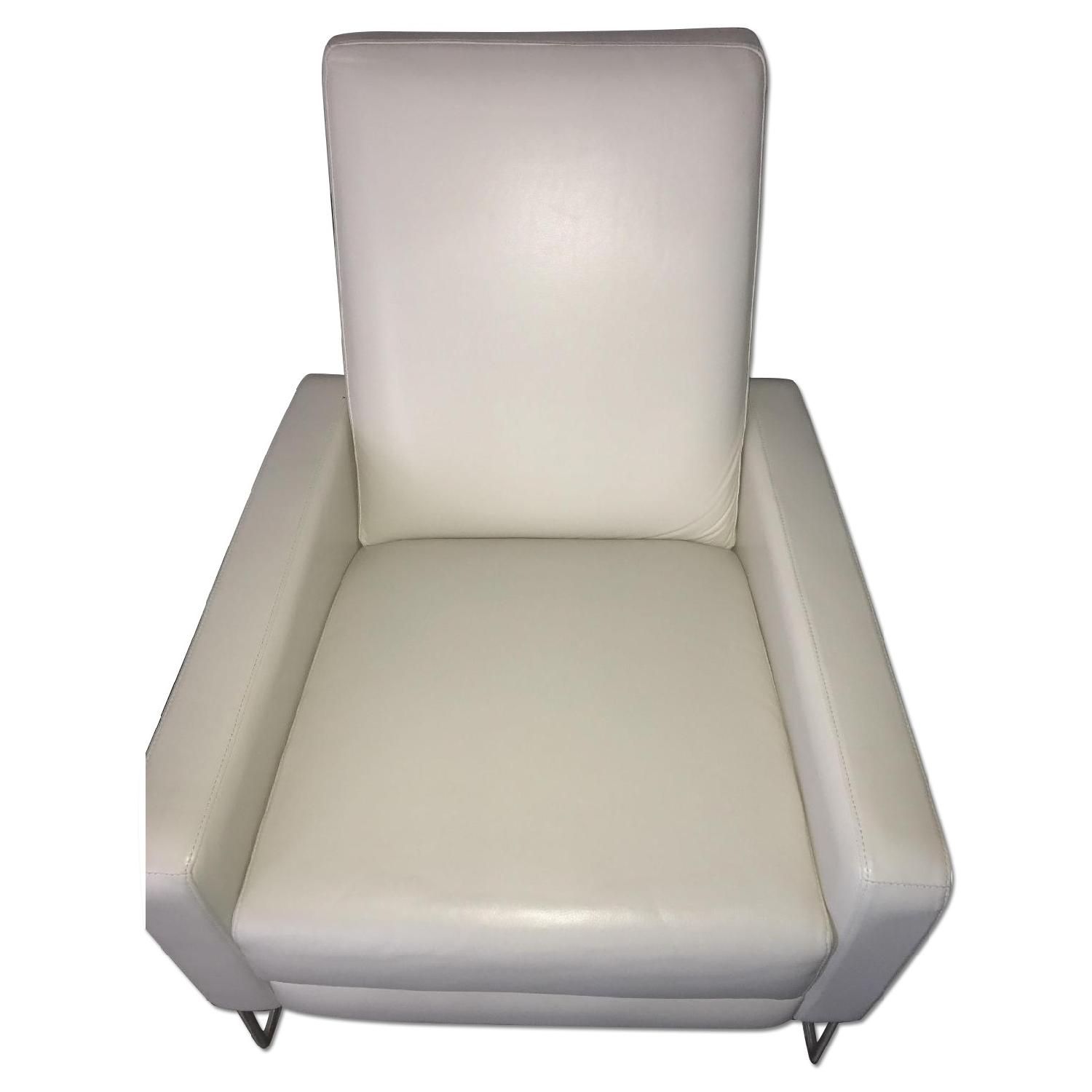 Seller's Notes:Kiln-dried hardwood frame; steel reclining mechanism; high-density, high-resiliency polyurethane foam cushions with Dacron® wrap; unidirectional web suspension; stainless steel or powder-coated steel base; fabric or leather upholstery. Used less than a month..