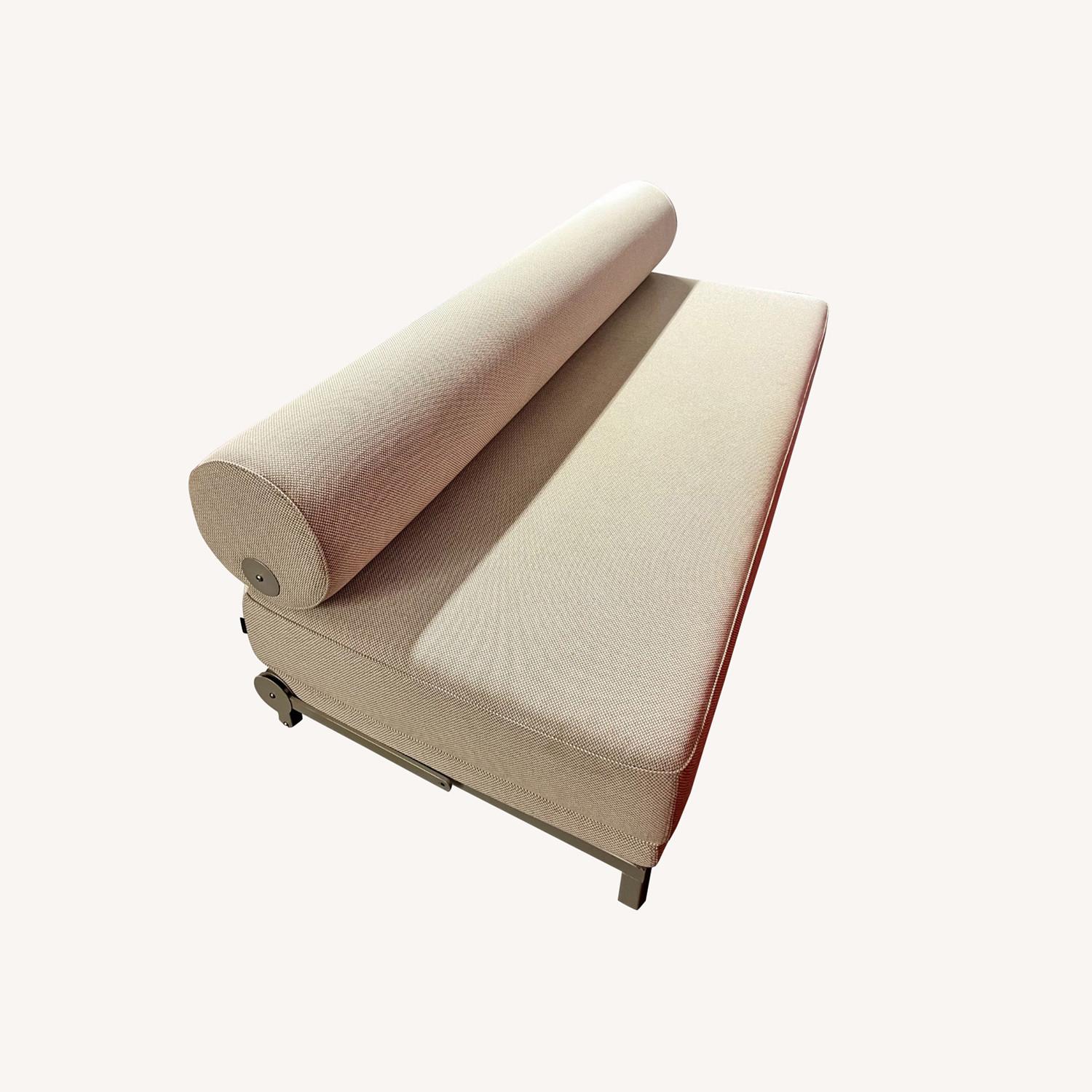 Seller's Notes:Barely used: this Twilight Sleeper Sofa was purchased from DWR in 2019 and has been stored, securely wrapped, since 2020. Fabric is "Cento" grey/white. Pickup at storage facility in Long Island City. From DWR: "Is it a sofa, daybed, queen-size bed or two twins? Yes to all the above. No other sofa bed will prove to be as useful as the versatile Twilight Sleeper Sofa (1999). Compact and nicely scaled, Twilight distills the concept of a convertible couch to a simple cylinder and rectangle. Its adjustable bolster pillow allows for a customized seat depth (19.5"/23"/34.75") and lumbar support. When it's time for bed, place the top cushion on the floor to create two twins or one bed that's larger than a queen but smaller than a king. For fitted sheets, use twin extra-long. Casters on rear legs for easy mobility. Slipcover is removable for cleaning. Made in Denmark."