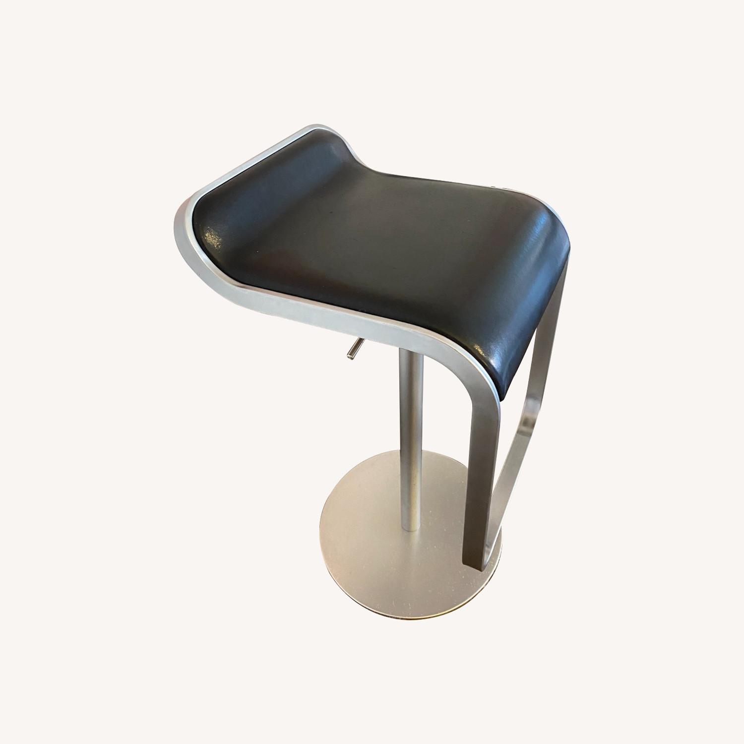 Seller's Notes:This set of two Lem Piston stools are adjustable from counter height (29”) up to bar height (34”). The stools have steel frames and the seats are covered in black leather. The seat adjustment mechanism works great. There are light scratch marks on the leather seats of one of the stools (see photos for details). The stools were manufactured in Italy by Lapalma and purchased new from Design Within Reach (current list price $995/each, before taxes and shipping).