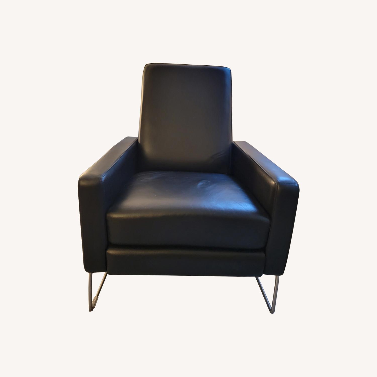 Seller's Notes:2 black leather Flight Recliners originally bought from DWR. Overall the chairs are in good condition, except the seat of one is a bit more worn because we sit on it in the living room whereas the other one is less used in the kids' room. The reclining function works perfectly. Super comfortable to sit or recline in. We are moving and want to find a new home for them. Household is free of pet and cigarette and chairs are odor free.