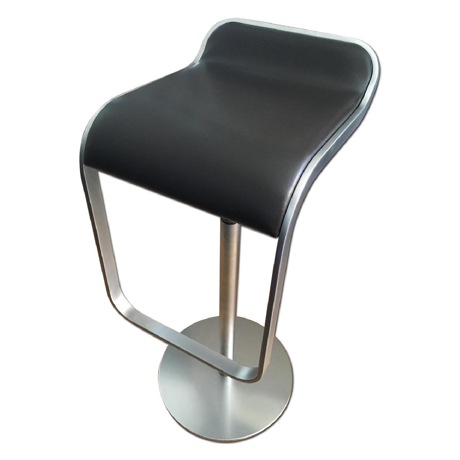 Seller's Notes:Leather-seat and stainless steel stool by award-winning designers, LEM; made in Italy. Seat height adjusts from 26.5" to 31"; total height including the back is 29.5-33.75". Beautifully constructed and perfect for a kitchen or a standing desk. From the DWR website: "The sculptural seat not only swivels but also adjusts easily from counter height to bar height with a lever that activates a gas cylinder. While utility strongly determines its form, this unique stool also has a visual lightness that creates the illusion of freedom from gravity. LEM is included in the permanent collection at the Victoria and Albert Museum."
