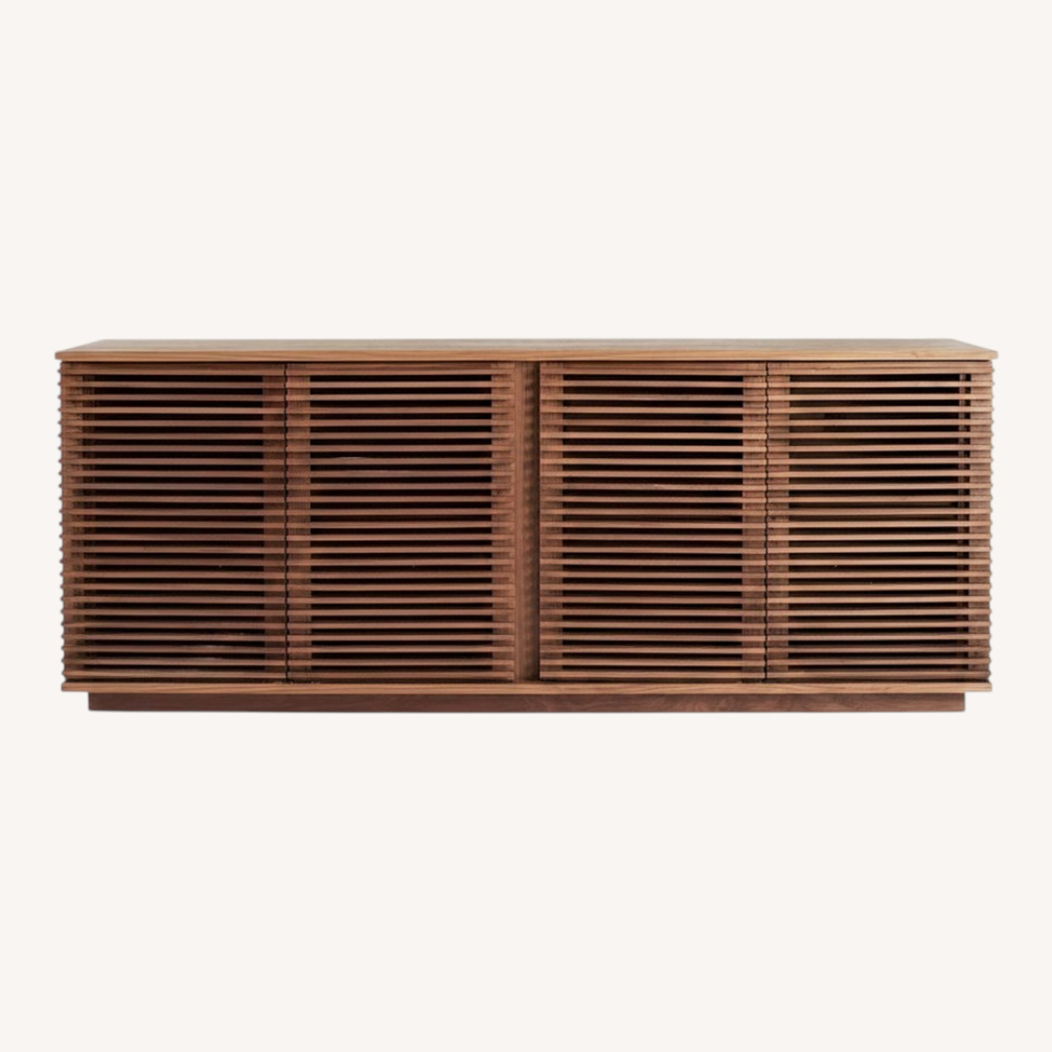 Seller's Notes:The credenza is in excellent condition, with the solid walnut finish and structure well maintained. It was purchased new and has been very lightly used in a home setting, primarily as a statement storage piece. The piece offers generous interior storage with adjustable shelving and a fully finished back, so it can be styled against a wall or floated within a space. Selling as part of a space refresh—it's a beautiful, high-quality piece that deserves to be used and enjoyed.