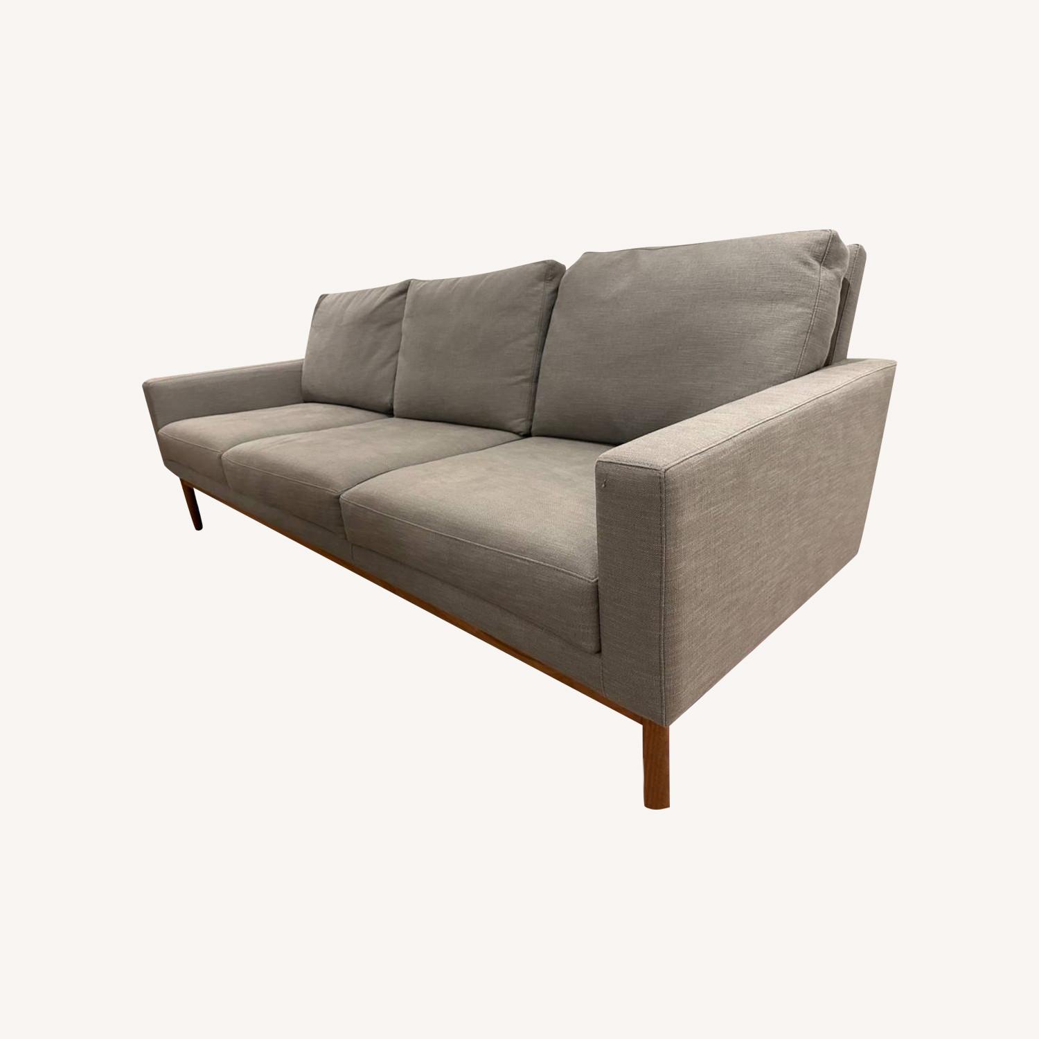 Seller's Notes:Raleigh sofa from Design Within Reach, in perfect condition. Purchased in 2016 and used in a home office. Current retail price: $6,795 https://www.dwr.com/living-sofas-sectionals/raleigh-sofa/100240675.html?lang=en_US&sku=100240675 (3 cushions, walnut legs, linen weave upholstery in "stone") More info: The Raleigh collection from Design Within Reach draws from midcentury Danish design. This sofa features an exposed solid wood frame that wraps around the back to support the seating area. Designed by Nicholas Dodziuk for Design Within Reach, the Raleigh Collection was named Best of Year by Interior Design in 2010. Why are we selling it? WE DON'T WANT TO! It's such a great couch! BUT - we turned our guest room into a gym, so this sofa is being replaced w/ a sleeper sofa so we have a place for guests.