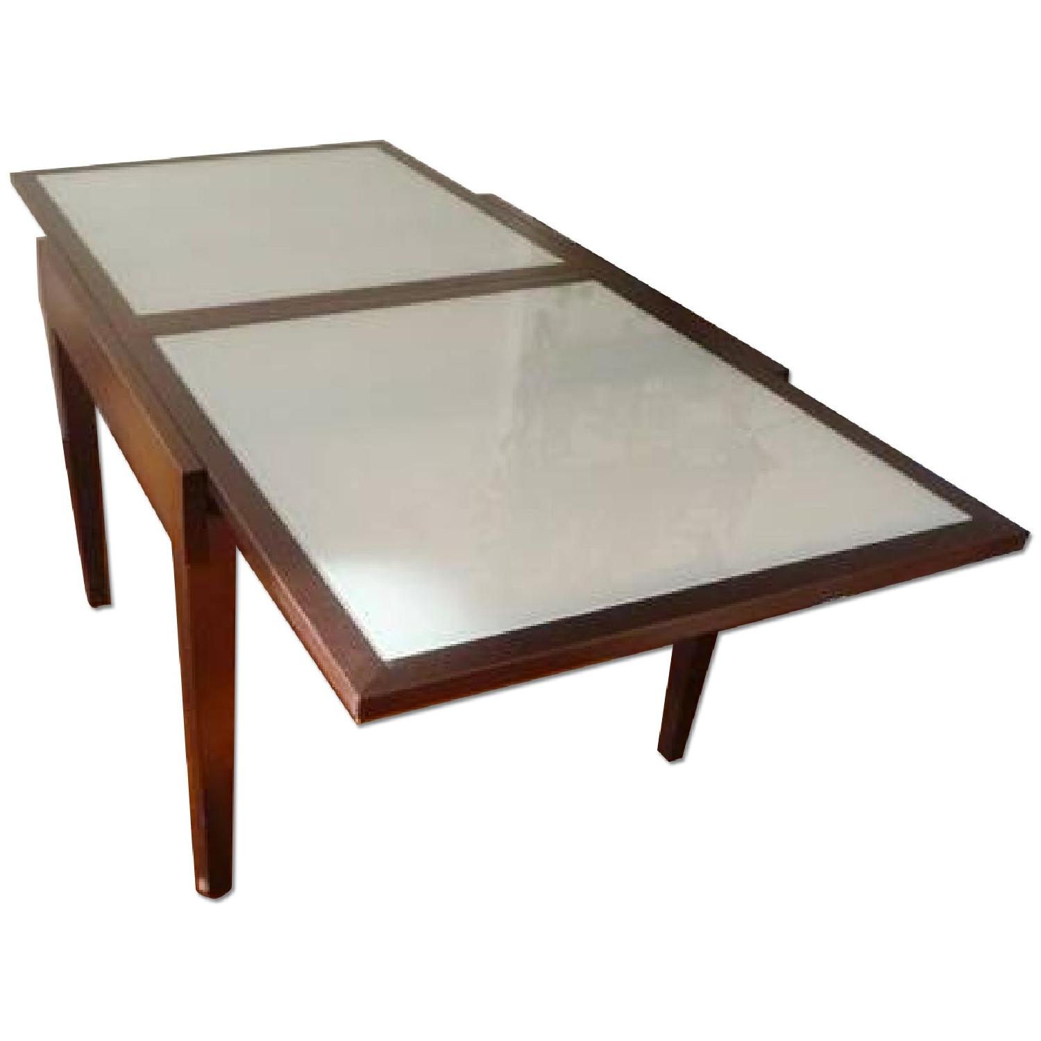 Seller's Notes:Design Within Reach Spanna Square Extension Table - perfect for apartments! Table extends with a simple lift and slide, rather than having to deal with the hassle of separate leaves. When closed, it fits into compact kitchens and dining areas to comfortably seat four people. With the design's seamless extension mechanism, the table smoothly extends to accommodate up to eight people, with plenty of legroom to go around. Classic, modern design with an elegant mix of dark, solid wood and tempered glass. In great condition. Originally purchased for $900. 35.5″ wide and long 71″ long expanded 30″ high