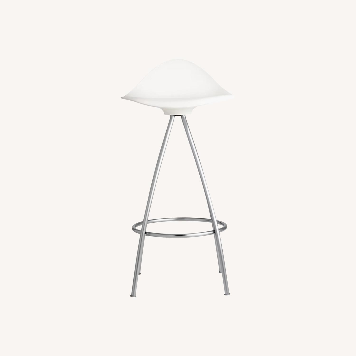 Seller's Notes:With a wave-like seat that mimics the curves of the human form and hugs your lower back, the Onda Stool (2006) delivers surprising lumbar support for a low-back stool. The four-legged steel base is impressively stable while also being both visually and literally lightweight. A 360-degree crossbar provides leg support while you swivel. Seat options include molded plastic with a matte texture, or molded plastic with a nonslip soft rubber skin. When disassembled, Onda is 100% recyclable. Made in Spain.