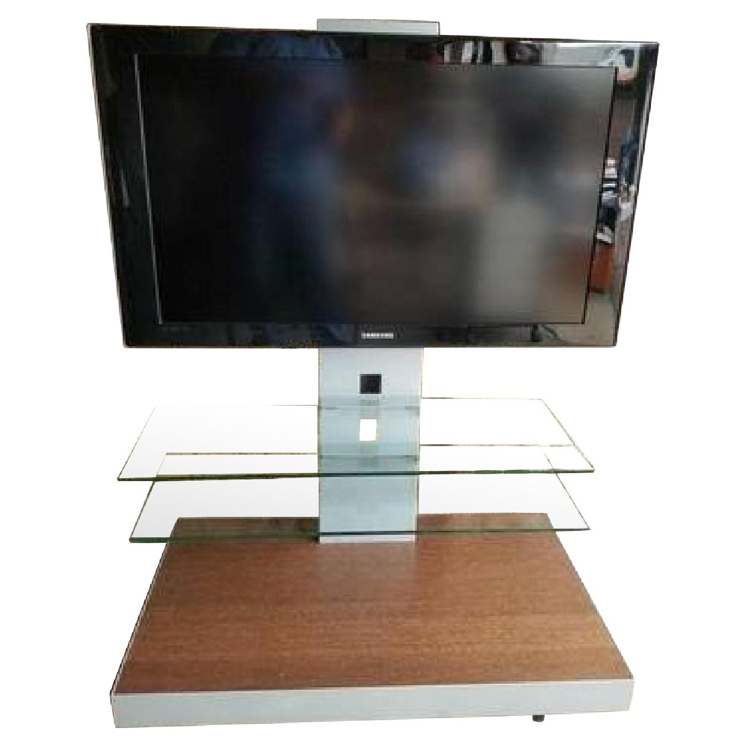 Seller's Notes:The Titan Media Stand is sleekly designed for minimal impact to your living space. With its small footprint, the Titan gives the illusion of disappearing when filled with components. Even the cords are hidden from view by running through the stem and out the back. Concealed casters allow for quick repositioning of the stand when a better screen angle is needed, thus providing greater flexibility than hardwired wall-mounted installations. The glass shelves measure 35.5" x 14" and hold up to 22 lbs each; the bottom shelf has a weight capacity of 100 lbs. The Titan Media Stand is appropriate for televisions measuring 32-50" wide and weighing up to 100 lbs. Made in Italy.