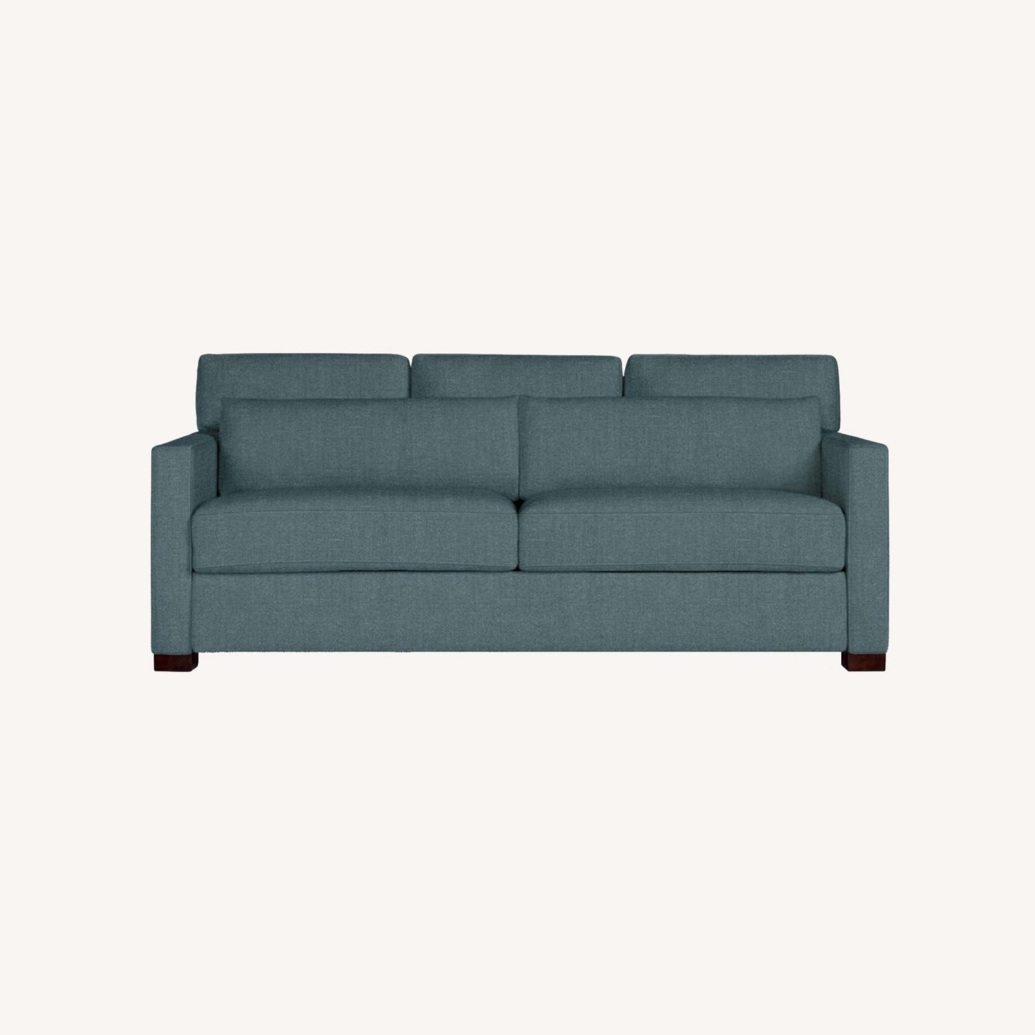Seller's Notes:Robins egg blue Vesper Sleeper Sofa. Good condition and hardly used for overnight guests, but minor wear and tear from ordinary use. Details from Design Within Reach below. Sells on DWR for almost $8000 -- a great value for a barely used sofa sleeper! Design duo Jeffrey Bernett and Nicholas Dodziuk are known for creating amazing sofas and beds, which is why we’re excited to for the Vesper Sleeper Sofa (2015), a design that combines both. Vesper delivers the wide, deep, comfortable seating expected in a sofa, plus an easy-to-fold-out bed that’s as welcoming and large as your regular mattress. Fitted with a patented conversion mechanism, the Vesper mattress rests entirely on a wooden platform, which means you won’t feel the sturdy crossbar underneath. Made in U.S.A. Brand: Design Within Reach Height (in): 34 Width (in): 81 Depth (in): 40 Weight (lbs): 325 Mattress size: Queen Mattress Height (in): 60 Mattress Width (in): 80