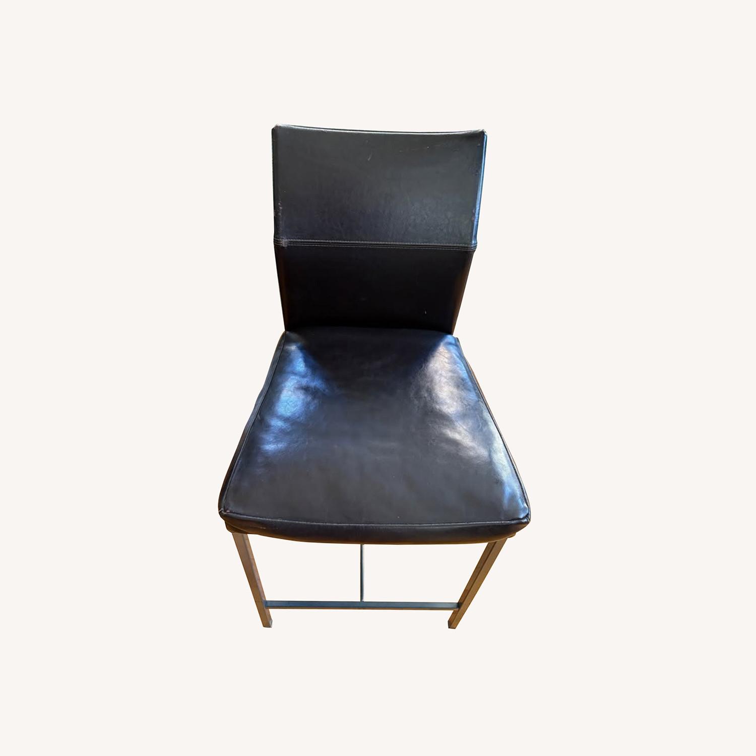Seller's Notes:Design Within Reach x KFF Antica counter-height chairs, dark brown leather.