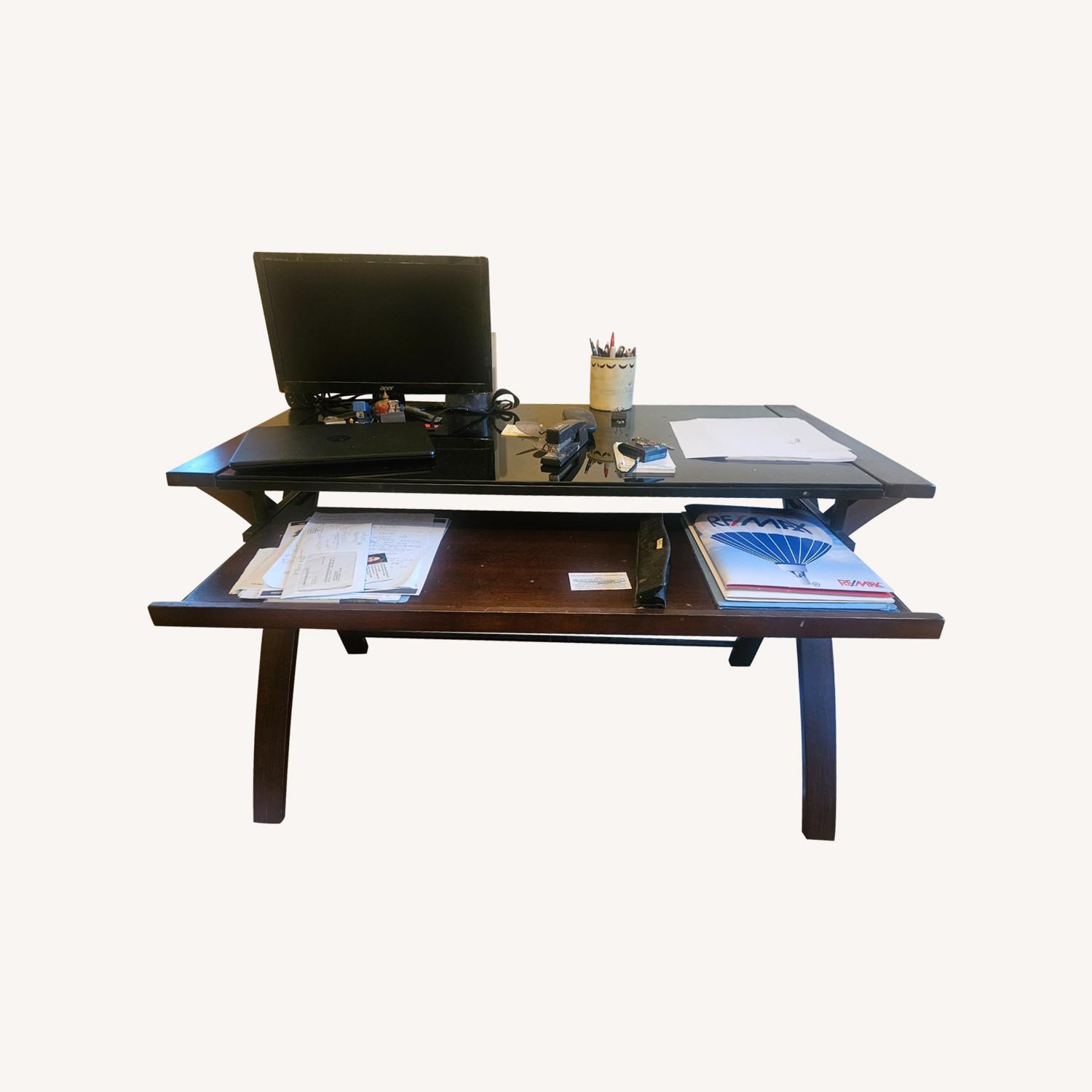 Seller's Notes:Wood pull out for working Great condition, dark glass top, the rest of desk is wood Sat at desk rarely