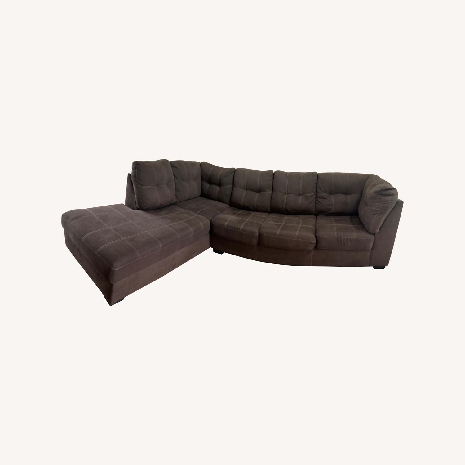 Seller's Notes:Comfortably seats 5-6 people. This is made of stain resistant fabric and has a sturdy construction. This sectional would make a great addition to your home. Good condition! Pet Free and Smoke Free.