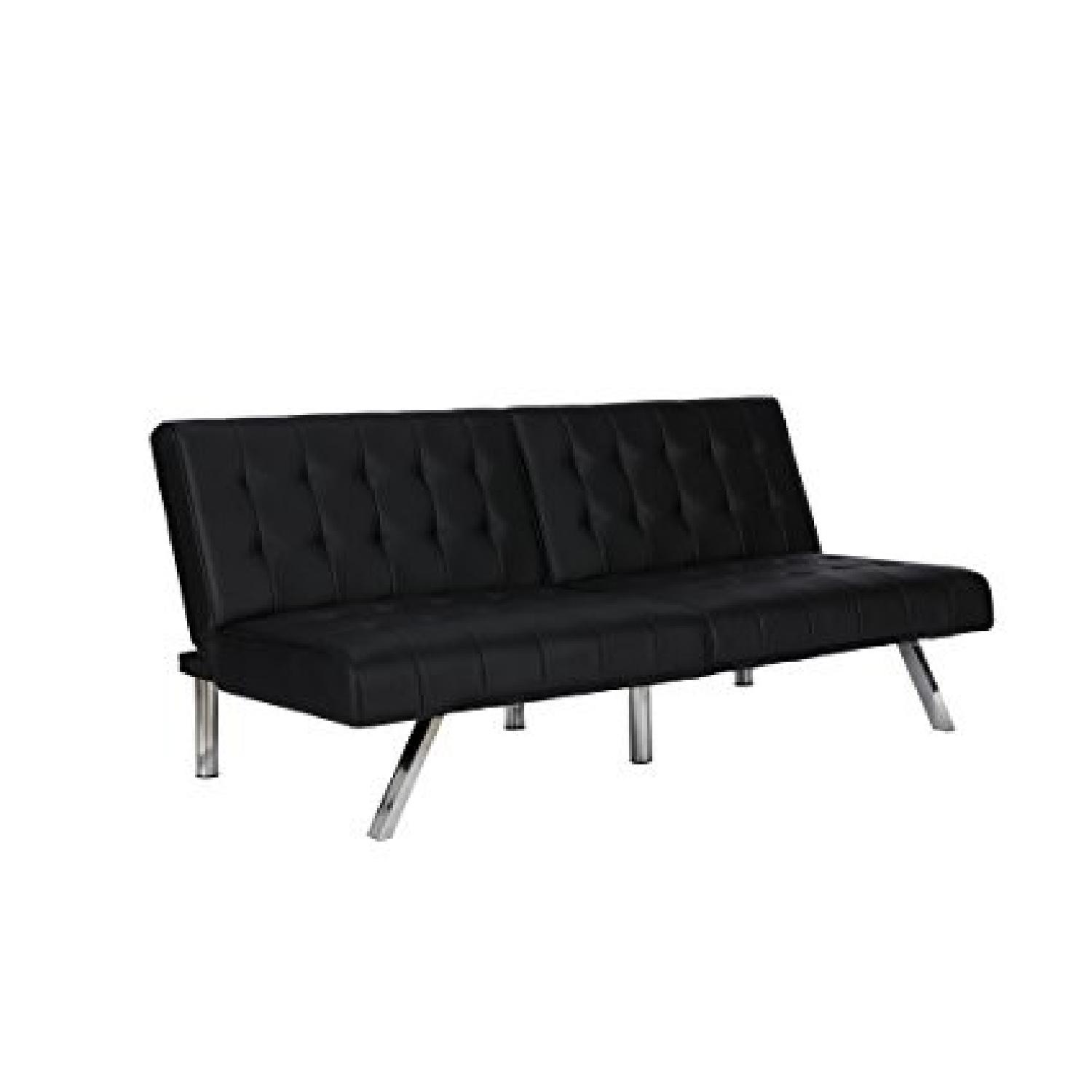 Seller's Notes:Convertible black futon available for sale. This futon turn into a twin XL bed. It has a split back that allows you to adjust the back angle to your comfort. The upholstery is faux leather and can be wiped clean. The red cover that you seen in the photos is made to measure for this futon and can be purchased for an addition $15. I am moving which is why I have to sell it to my chagrin. It is a comfortable futon, especially when you have guests over. 1 adult or 2 children can comfortably sleep on it. It is in absolutely pristine condition and has no visible signs of its year-old age.