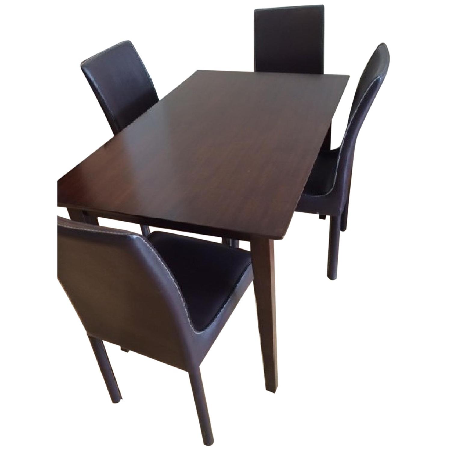 Seller's Notes:A Set of Dining Room Table & 4 Leather Chairs for Sale. Good Condition. Table length 47.5", width 23", height 30".