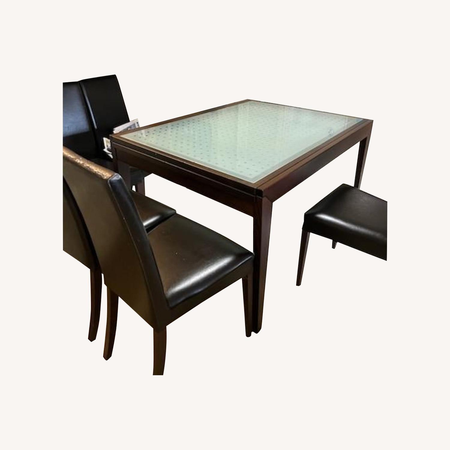 Seller's Notes:It's a beautiful dining table expands seats 6 but seat 8 comes with six chairs wear and tare glass wood