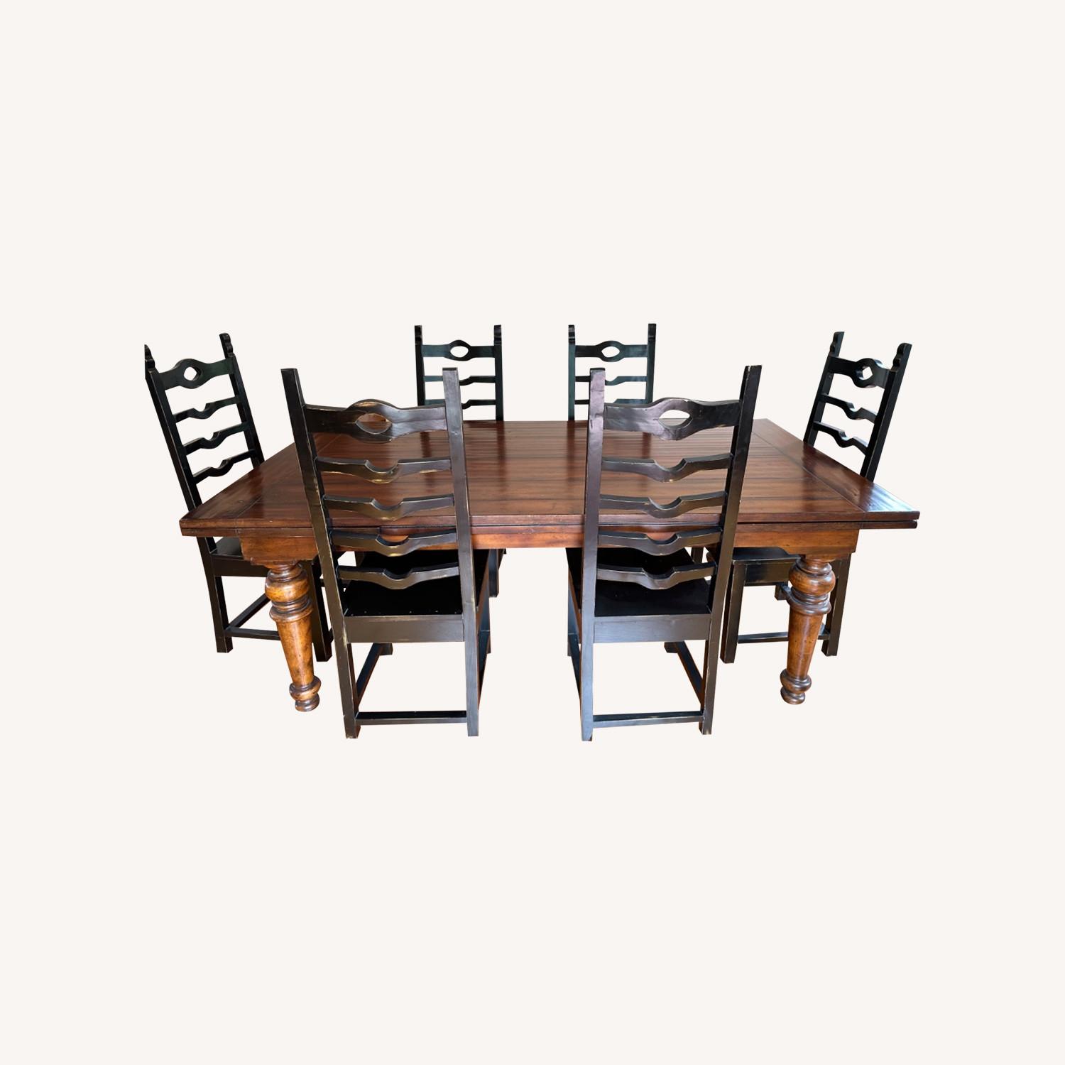 Seller's Notes:Hooker table beautiful and in great condition. Bought at Stickley Audi 12 antique chairs in black and brown as shown