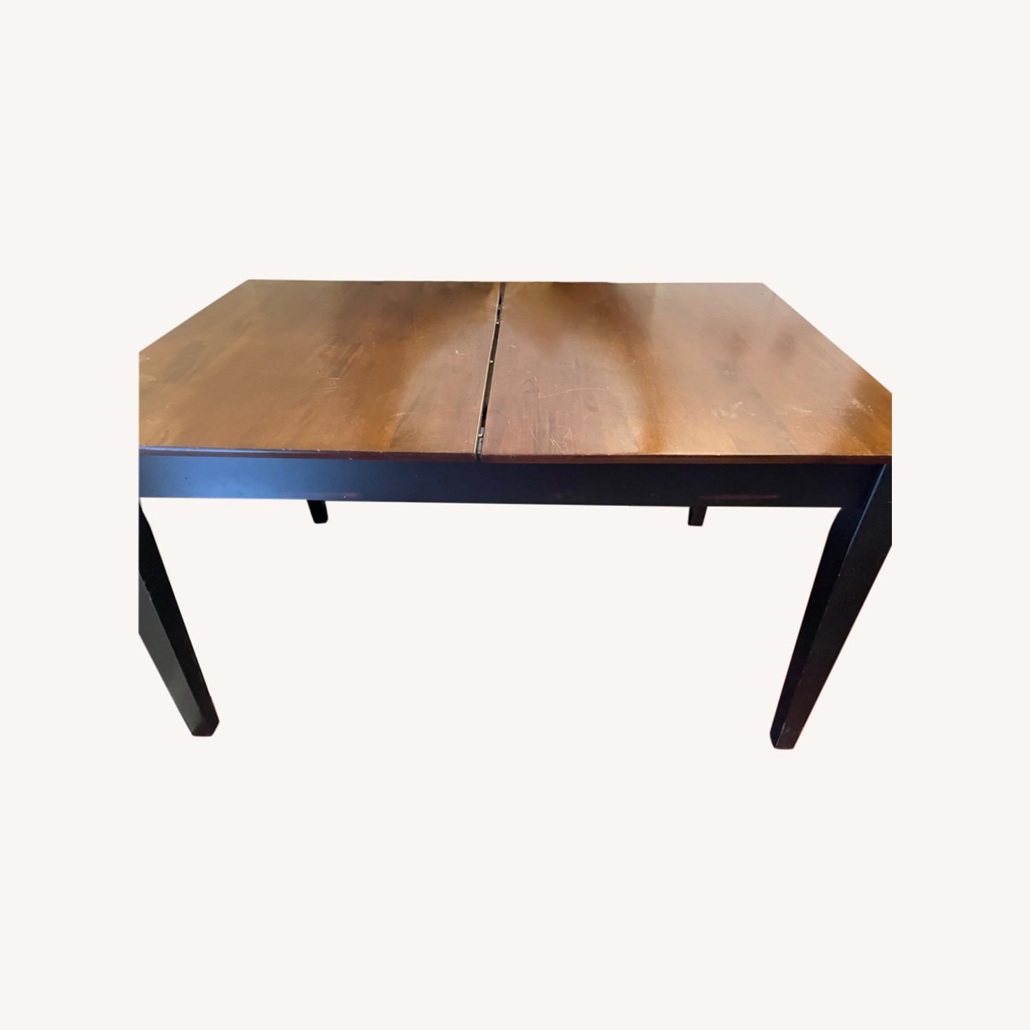 Seller's Notes:Sturdy dining table, can be extended by 2 feet with leaflets which fold into table when not in use.