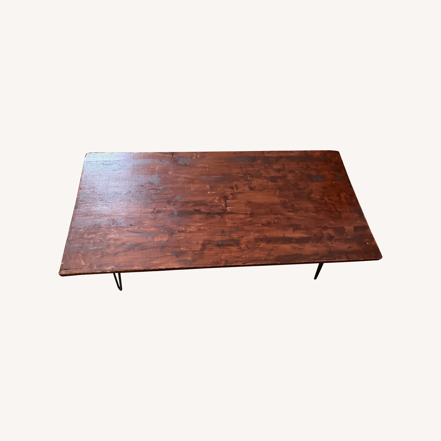 Seller's Notes:Hand distressed wood coffee table with steel legs. Sturdy and very durable. It has one crack on a corner that has been that way since we got it. Great table at just the right height.