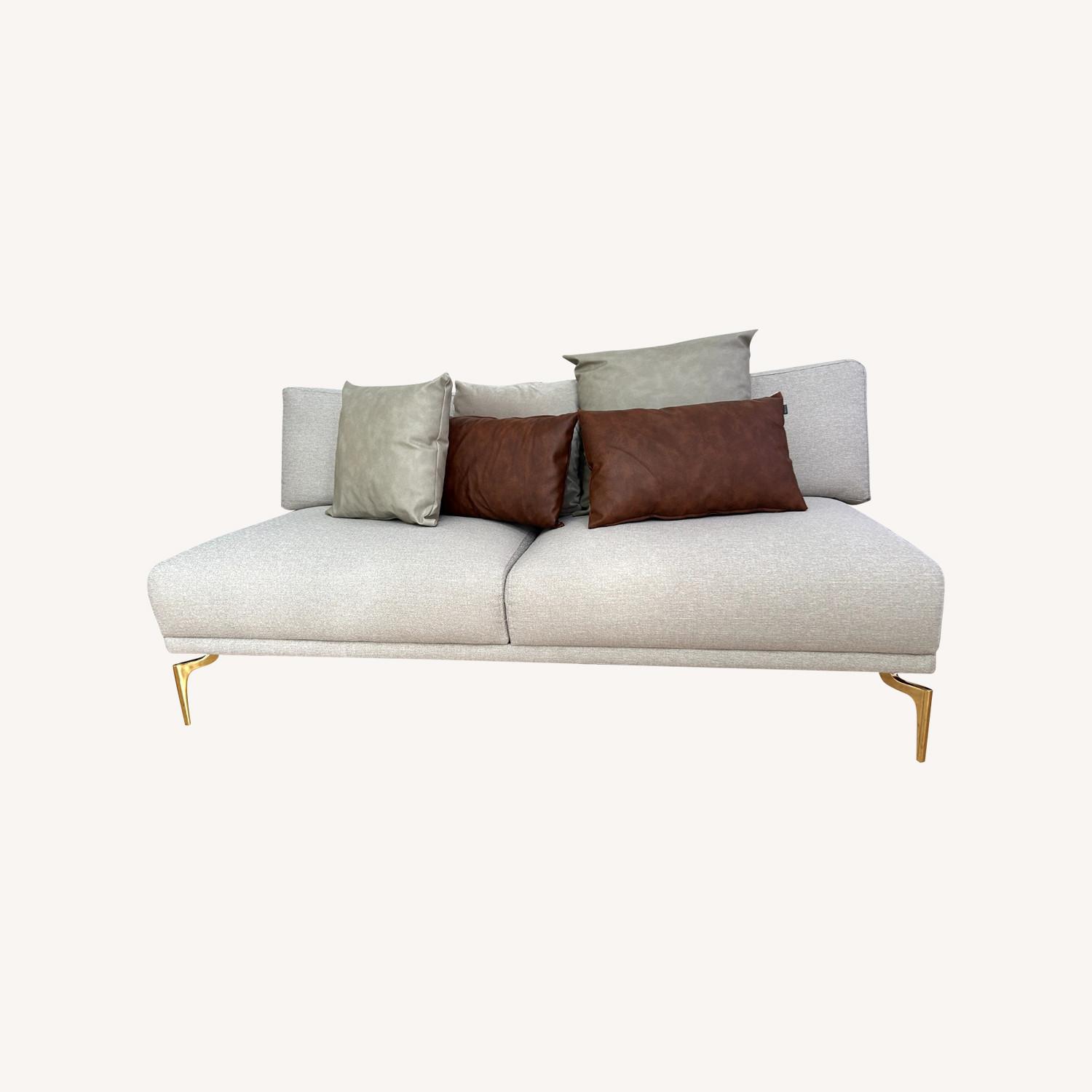 Seller's Notes:Beautiful brand new Dogtas 2 piece sofa. Beautiful cream color with gold legs and comes with pillows. Never used!!