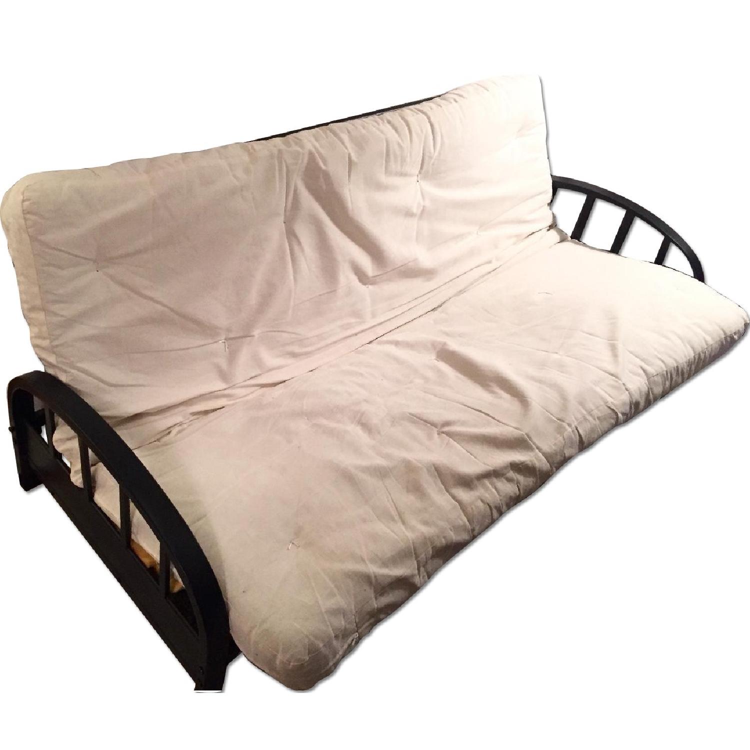 Seller's Notes:This futon was sold to us by previous roommates we just don't have enough space for it. It's in great condition, less than a year old, and has no damage. Pulls out to a full-sized bed and we are including an egg carton pad at no cost for extra comfort.