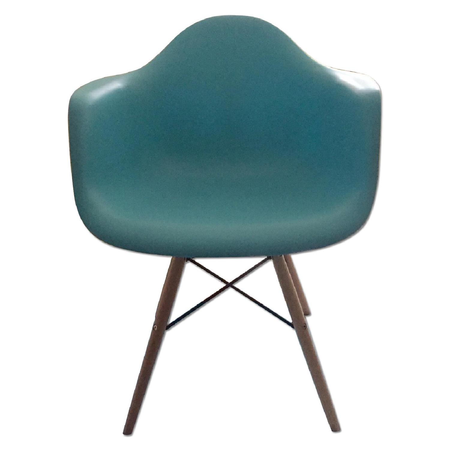 Seller's Notes:I bought this chair from Dot and Bo a year ago. No damage and doesn't look worn at all. Very good condition. I don't have any pets and don't smoke. It's a great accent piece. Please see below for product description from Dot and Bo's website. Dot and Bo's currently selling this chair for $165. http://www.dotandbo.com/collections/mid-centurys-greatest-hits/1269-montmartre-arm-chair#Aqua "Some designs were ahead of their time. Considered the chair of tomorrow both for its design and its innovative single-mold manufacturing process, the Montmarte Arm Chair is inspired by one of the most iconic mid-century furniture designs. Created in the spirit of economy and affordability, its unique shape was designed to spread the sitter's weight and pressure evenly. The deep seat and waterfall edge provide additional comfort as the design shapes itself around the body's curves, while its ash wood dowel legs add a classic touch. If you've done away with formality in your home, the Montmarte Arm Chair is that one piece of furniture that exemplifies the "less is more" ethos. It's the ultimate seat that goes well in a variety of different settings: as a home office chair, an entryway slipper seat, or a statement piece in the living room."