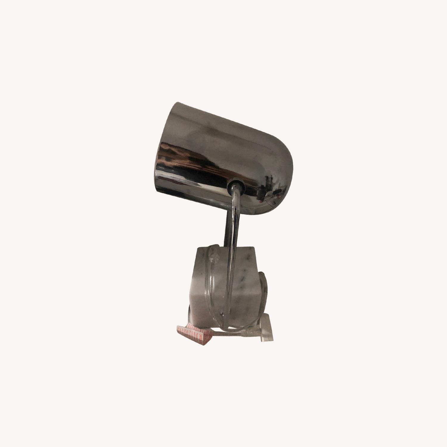 Seller's Notes:Accent piece perfect for living rooms and bedrooms. Reading lamp with rotating pivot heads. Chic and modern. Grey stone with silver accents.