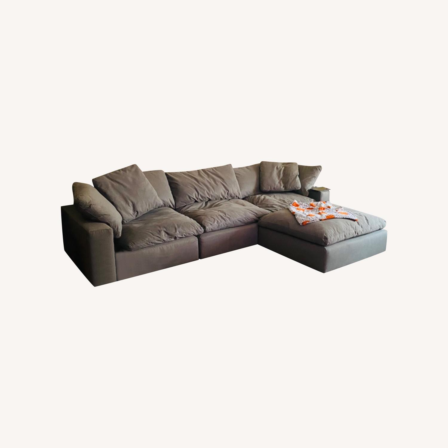 Seller's Notes:This dreamy super comfortable sectional is less than a year old. Neutral color. Machine washable covers and able to be stuffed for desired comfort level. 5 star review on Bobs- great for a big family !