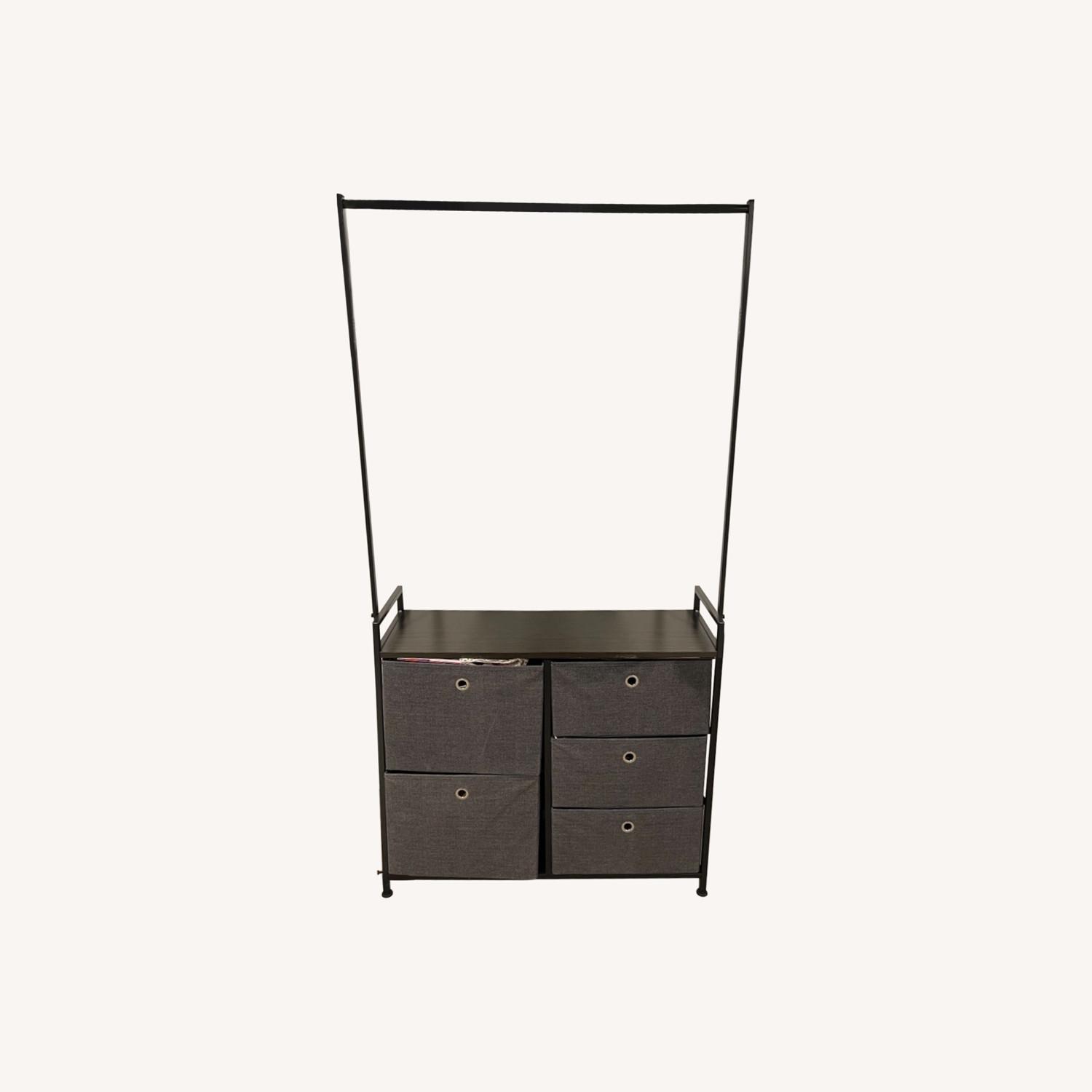 Seller's Notes:With a hanging rail and 5 roomy drawers, you have both a clothes rack for open storage and a drawer dresser for closed storage. Hang the clothes you often wear on the rail for easy access and stash away the items you don’t what to show off in the drawers for a tidy space. Made of Oxford fabric, the drawers are wear-resistant for long-term use.