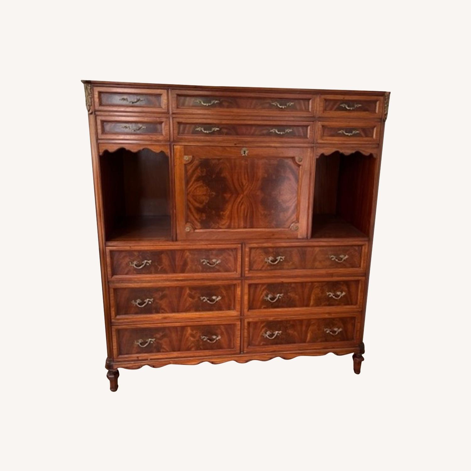 Seller's Notes:this fabulous dresser also functions as a desk.enter the key into the keyhole and find your self able to work at the desk, or even apply makeup. perfect for functional and practical use in a bedroom OR living room, dining room. the piece was acquired from an estate sale back in 2001. Marble top optional for use or aesthetics. all drawers in dresser open and are functional.