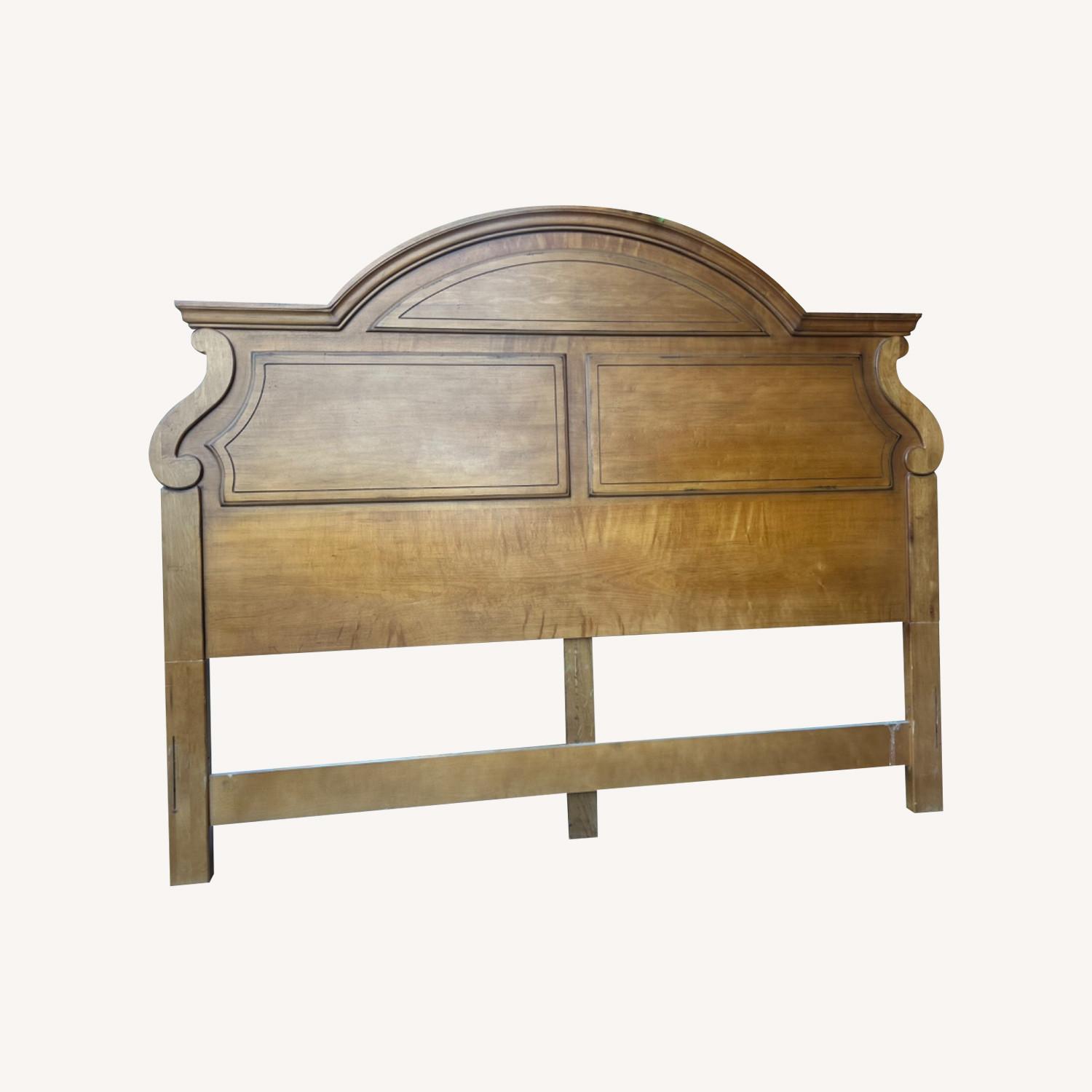 Seller's Notes:Drexel Heritage headboard and footboard in solid maple. Beautiful solid piece that fits a California king mattress. When assembled the bed measures 7’ x 6’. There is some natural discoloration from over the years. But really in excellent condition.