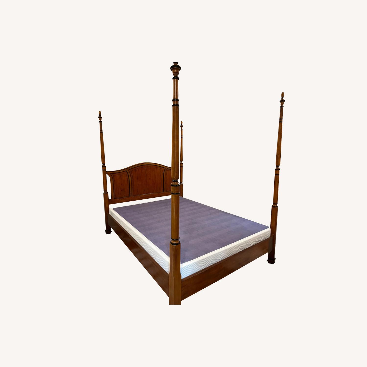 Seller's Notes:Beautiful vintage four poster wood Drexel heritage bed. Very sturdy in excellent condition. Probably around 50 years old, bought it vintage as well. Box spring is not included.