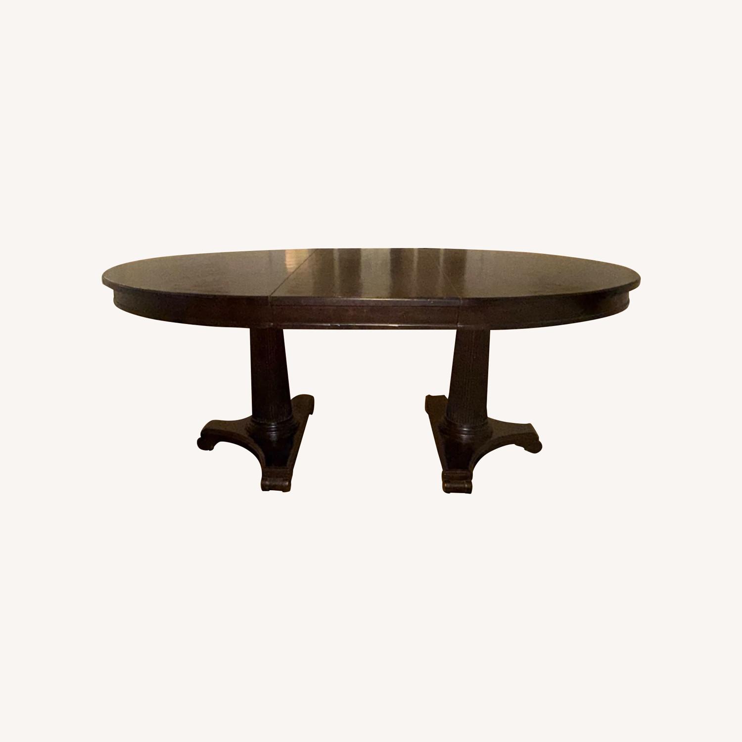 Seller's Notes:This dining table is in impeccable condition. The shadows seen in the photos are a result of the overhead lighting - there are no spots, scratches or blemishes in the wood or the coloring. This table comes with two 20" leaves (and is photographed with only 1 leaf). Both leaves are in pristine condition and are fully functioning. The full length of the table with both leaves is 94". At this size, it comfortably seats 8 people. I am also selling 8 Pottery Barn queen anne chairs that match the table.