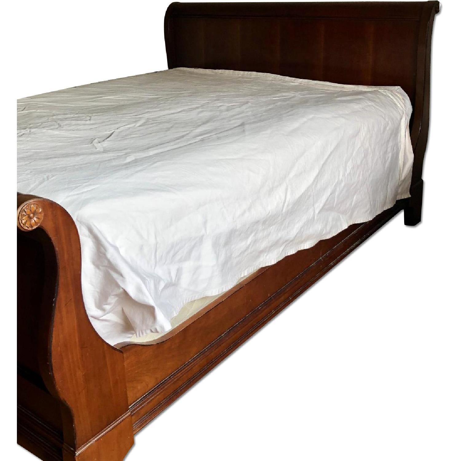 Seller's Notes:This solid wood Drexel Heritage sleigh bed is in great condition. We are selling it with other items from the same set because we are redecorating. The color of the wood has a reddish tint to it; it is more like a cherry color. Most of its life this bed was in a guest room, so it was not used often.