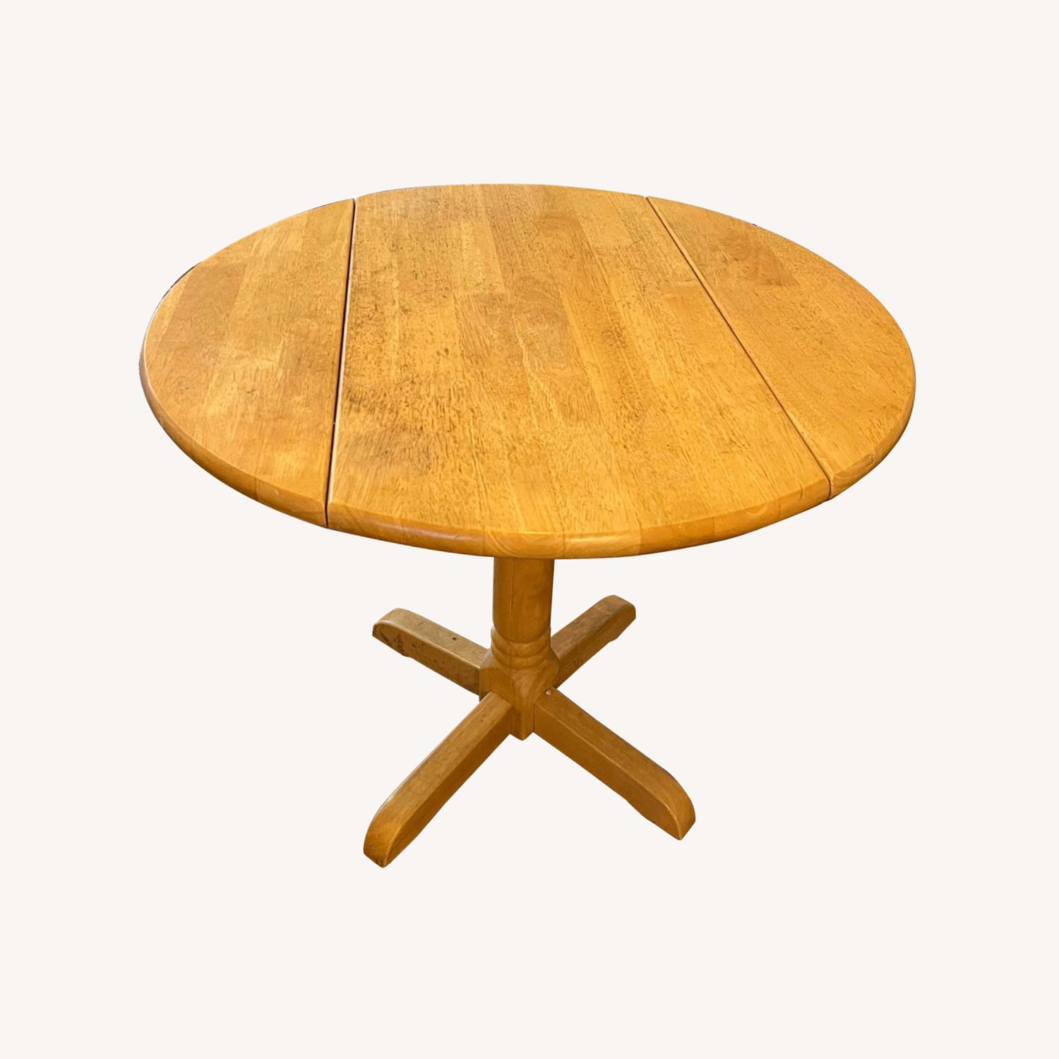 Seller's Notes:Lightly worn drop leaf dining table. Perfect for a small dining nook in a studio with its adjustable shape!