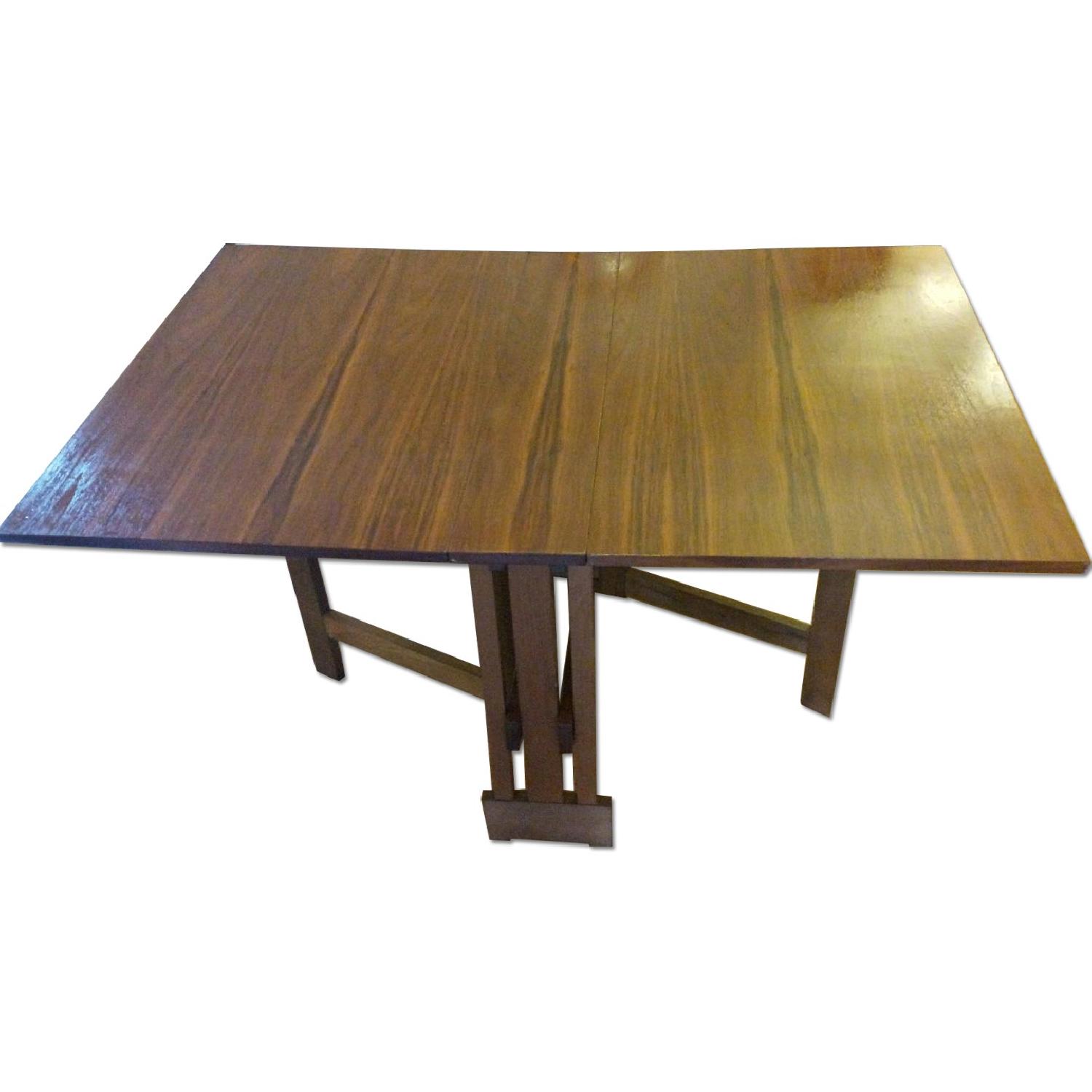 Seller's Notes:This is a drop leaf dining table made of solid wood. The brand for the table is unknown. It is a sturdy table and very convenient for whatever sized apartment you may have. There are some minor scuffs, water marks, along with some light chipping which are viewable with the included pictures. However most of these are only apparent upon very close inspection. A couple of the watermarks do stand out a bit. In the past the table was exposed to cigarette smoke. However it has been in a smoke-free home now for roughly the last 5 years. With both leaves extended the table measures 54.25" long by 36.25" wide by 29.5" tall. When both leaves are folded the measurements are 8.75" long by 36.25" wide by 29.5" tall. This table has served my family well for a number of years. However we have recently purchased a new table and no longer need this one.