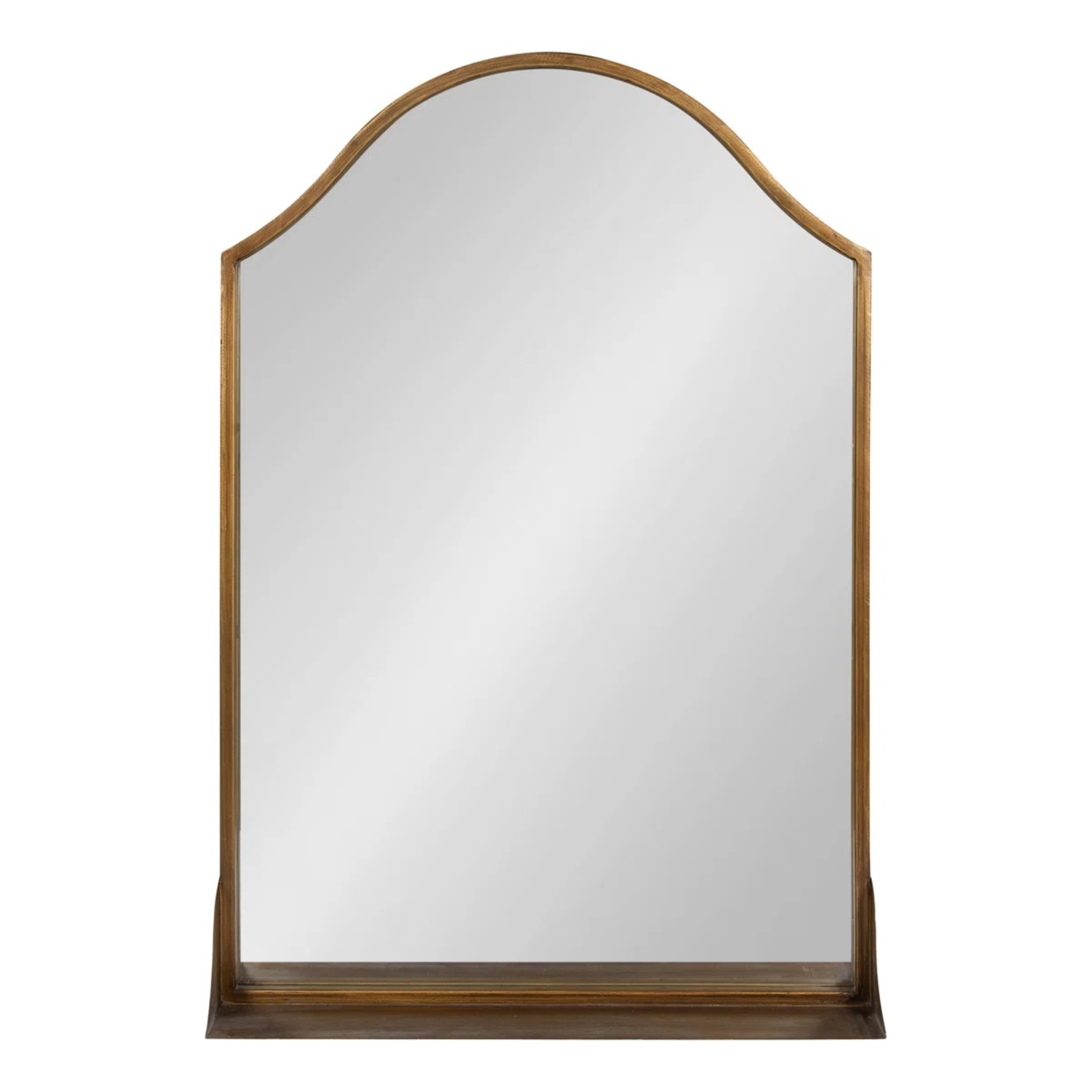Fill your home with traditional elegance by hanging the effortlessly glamorous Gramera mirror. This striking wall mirror takes advantage of its scalloped frame to bring vibrancy and elegance to any room of the home. Its glamorous frame is made from iron metal to add value to your investment, lasting throughout multiple years of high-quality display. The striking design is complete with a sleek gold finish that fits into various color schemes, adding an elegant look that elevates any area. This mirror is 20 inches wide by 30 inches tall, working well in an entryway or over a console table. You can also use the Gramera in your next bathroom renovation as a glam bathroom mirror! If you'd like to make it more functional, use the display ledge for small photo frames, mini succulents, toothbrushes, or house keys. The large surface area of this mirror makes it perfect for any room in the home, emphasizing the brightness of the space while creating more dimension throughout. Metal keyhole hangers are attached to the back for quick and efficient wall installation.