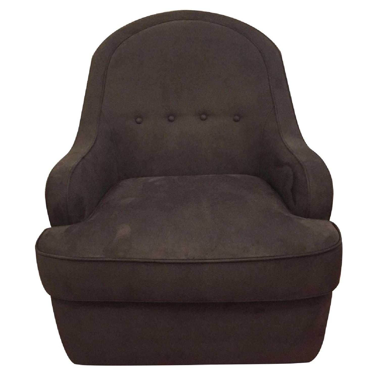 Seller's Notes:This is the most comfortable glider and is in tip top condition. I knew that it would be in my son's nursery so I purchased a special order dorosuede fabric that resists stains. In the picture, the lighter gray spots are not stains, simply rub the other way and its all uniform as this is the nature of suede-like fabric. There is a water stain beneath the cushion from a spilled water bottle but is hidden beneath cushion and cannot be seen. You can see the same style (in a different fabric) online in this nursery tour: http://ohjoy.blogs.com/my_weblog/2012/02/rubys-room.html