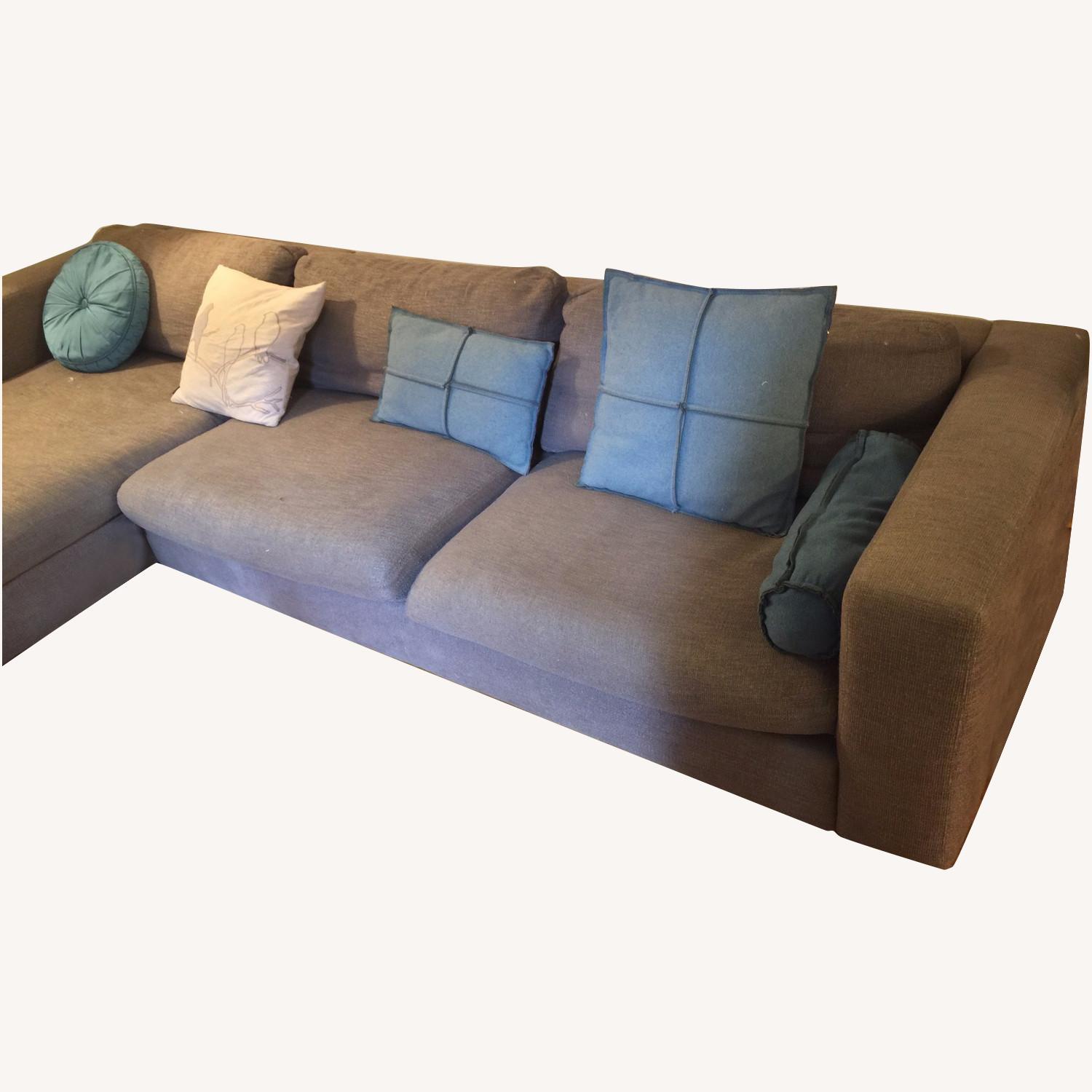 Seller's Notes:Authentic DWR Exclusive Reid Sectional Left Chaise Low profile Gray tweed | DWR. Condition is Used. Local pickup only. DWR Not just for sitting, the Reid Collection (2007) invites you to watch movies, take a nap or surf on a laptop. Maximizing the enjoyment of downtime is something Jeffrey Bernett is passionate about, since he spends a fair bit of his free time doing extreme sports, and he held nothing back when creating Reid with design partner Nicholas Dodziuk. Unlike sofas where you sit "on top" of the cushions, the experience of Reid is more of a "relaxed sit," thanks to down- and feather-wrapped foam. The back cushions are filled with a soft blend of down and feathers, the seat depths suit various lounging positions and the wide armrests offer support from elbow to wrist. This comfortable collection is upholstered in fabric or whole hides of the best leather, which means there are very few seams. Made in U.S.A