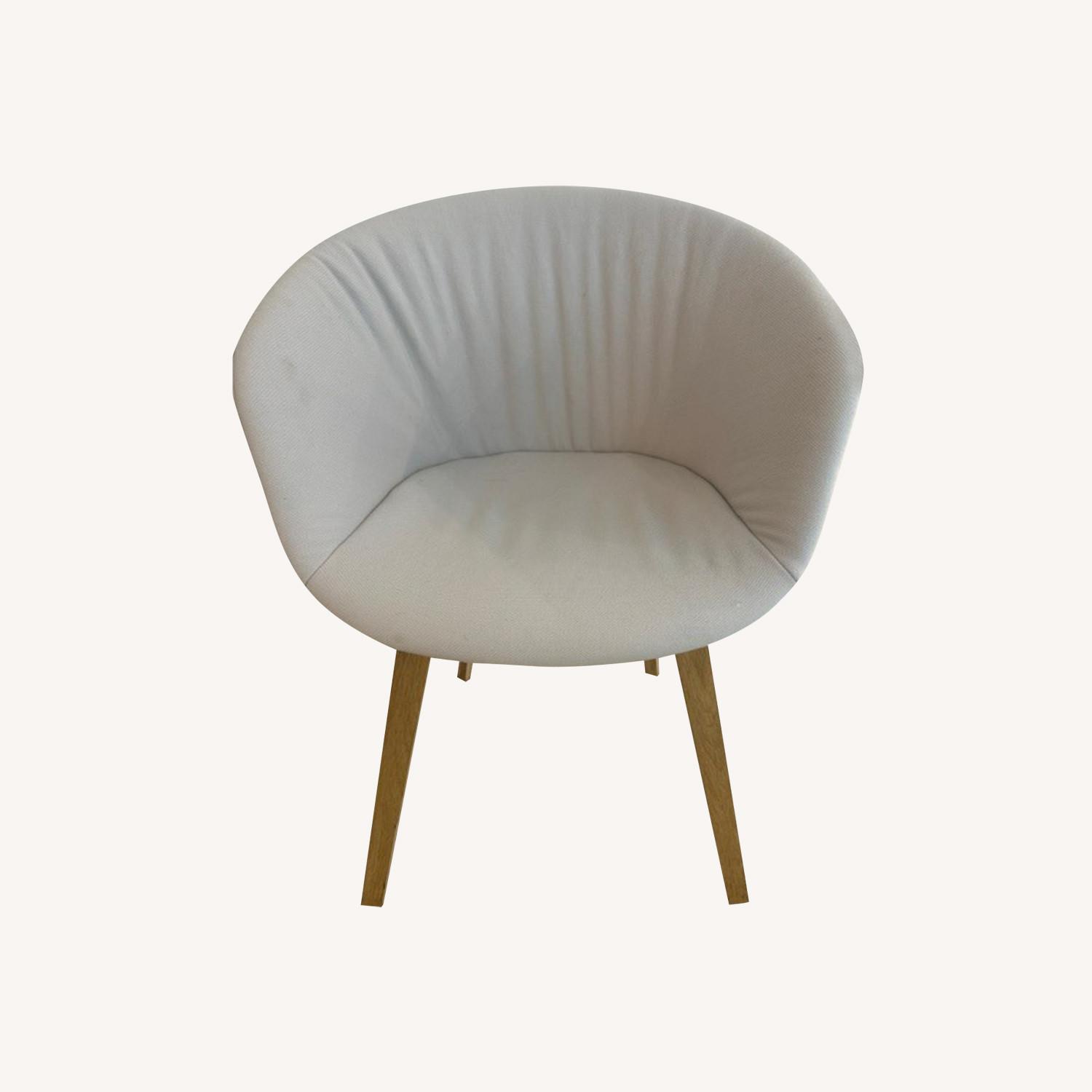 Seller's Notes:Beautiful set of Hay "About a chair 23 armchair." Super comfortable and currently selling on Design Within Reach for $715 per chair. Upholstered in Steelcut beige. Minor blemishes on one chair (pictured) that can be removed easily with fabric spray or steam clean.