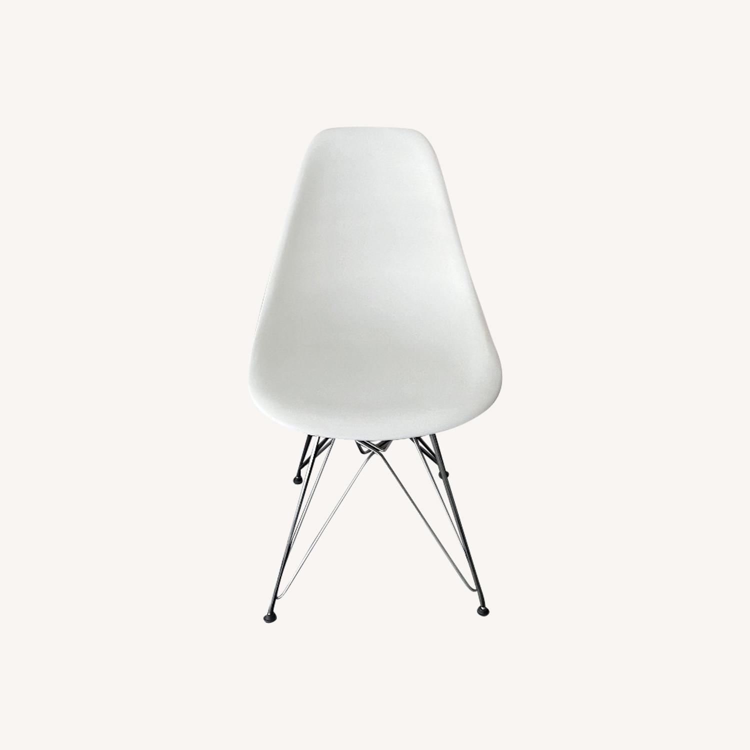 Seller's Notes:Charles and Ray Eames adapted molding techniques developed during World War II to produce their classic shell chair’s simple, gracious form. In 2001, continuing the Eames’ design ethos of continual, iterative advancements, Herman Miller reintroduced the original Eames Molded Shell Chair (1950) in a durable, 100 percent recyclable polypropylene. A simple, beautiful, classic form that looks great in any setting. Recycled chairs are made with 100% post-industrial recycled plastic.