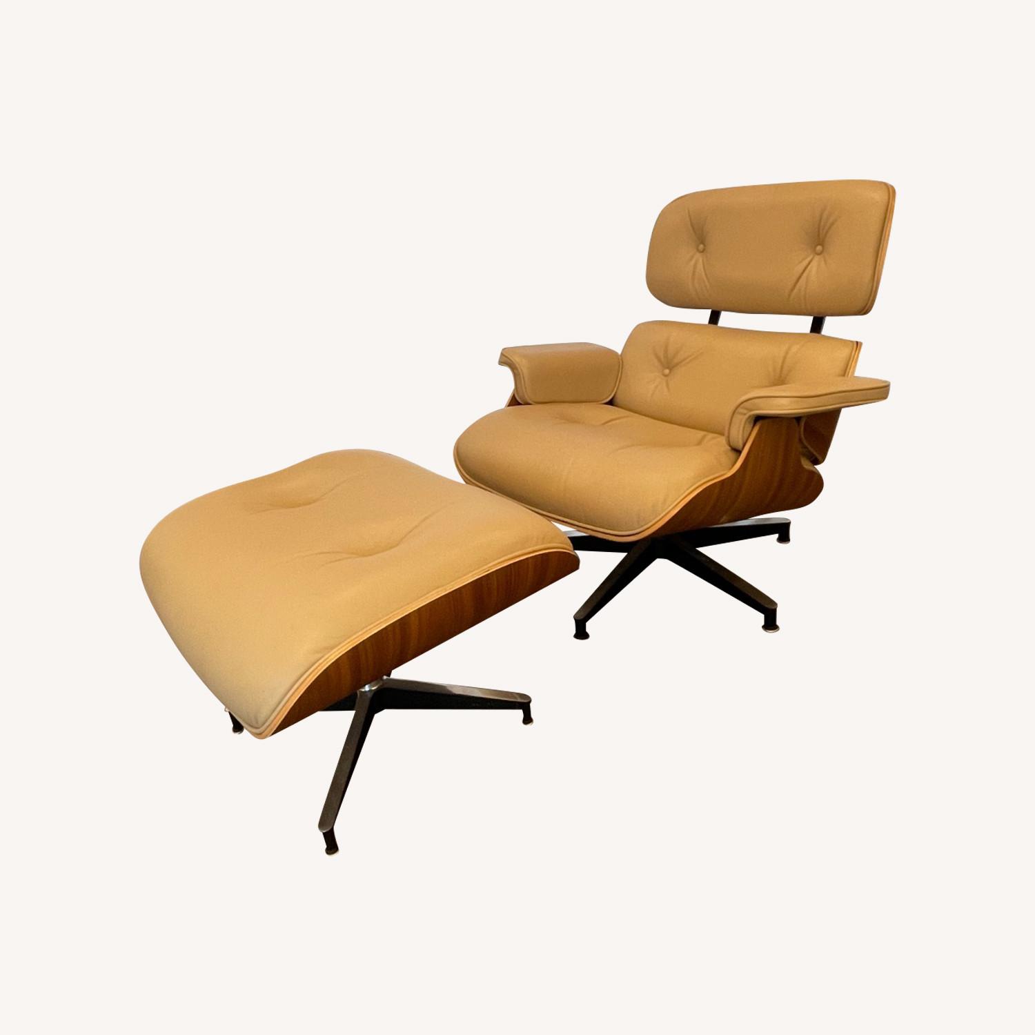 Eames Lounge Chair + Ottoman in Tan Leather