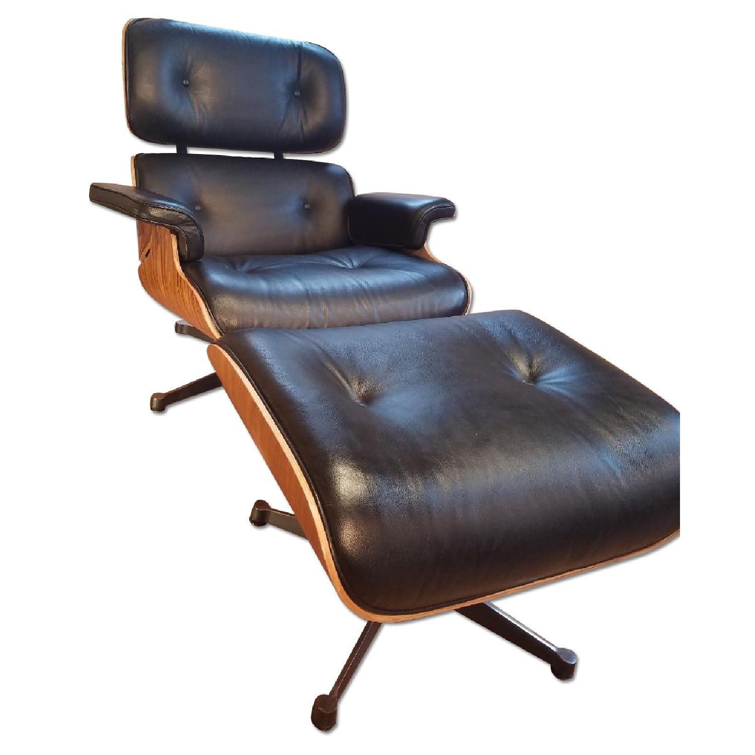 Seller's Notes:The Eames Lounge Chair and Ottoman are cushioned in premium aniline and eco-leather from Italy and has silicone shock mounts installed yielding flexibility of the chair. Alongside, the lounger is draped with PU-Injected removable memory foam cushions that are again wrapped with a synthetic silk. To avoid accidents and wear and tear, the lockstitch method of braiding the thread is used. Features: 1. Upholstered in your choice of top-grain eco-leather, premium Italian leather, and 100% aniline leather imported from Italy. Over the years we have maintained excellent relationships with our supplier and have an extensive supply of leather finishes and colors. All parts of the chair are made with the same leather grade option you choose 2. Braided thread used with Lockstitch (stitch type #301) ensures piping stays in place and seams are long lasting Our plywood veneer is FAS American Timber. FAS certified means that they are the best cuts from the log with minimal knots. These are sourced exclusively from the USA, Canadian and Brazilian companies 3. As specified by the original design, the veneer features 7 ply's of cross-grained engineered wood and is Kiln dried to prevent any sort of warping or cracking 4. The veneer is finished with a final application of Italian Lacquer protecting the wood and giving it the most natural look possible. After 4 coats have been applied, the color will not fade over time 5. PU-Injected memory foam cushions are wrapped with a synthetic silk. This results in an extremely comfortable chair with the highest level of durability 6. Cushions are removable, as per the original design 7. Silicone shock mounts underneath the arm connect the back and base of the chair allowing for flex. Silicone provides for the optimal amount of flexibility and longevity 8. Standard Vitra-style cast base and back braces comes in powder-coated black with a high polish bright aluminum trim Chair features 360-degree swivel 9. Little to no discernible difference between our replication and the original design