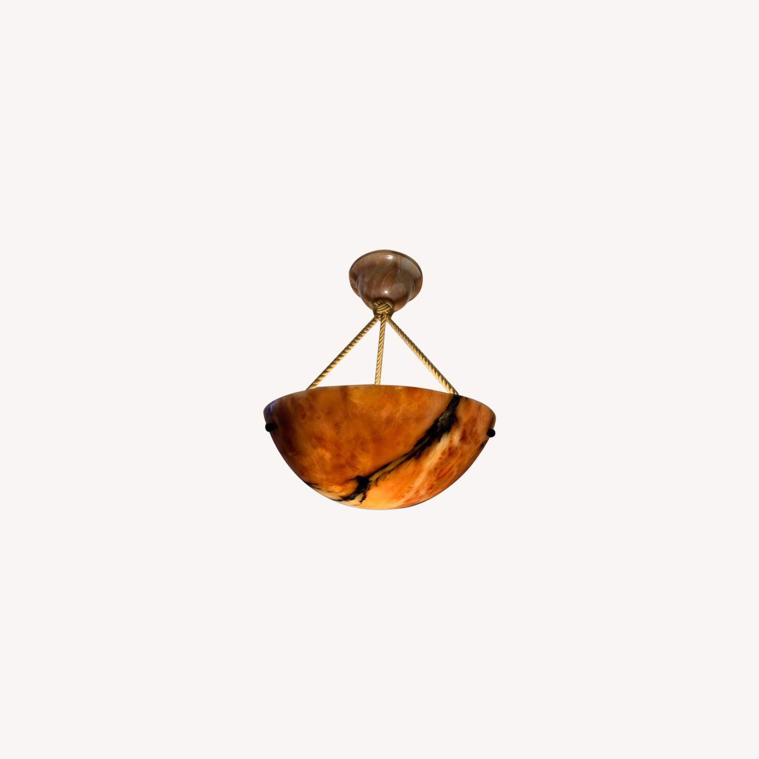 Seller's Notes:Purchased from Eileen Lane Antiques—have original invoice. Carved from one piece of alabaster. Displays a warm glow when lit. In very good condition. No imperfections.