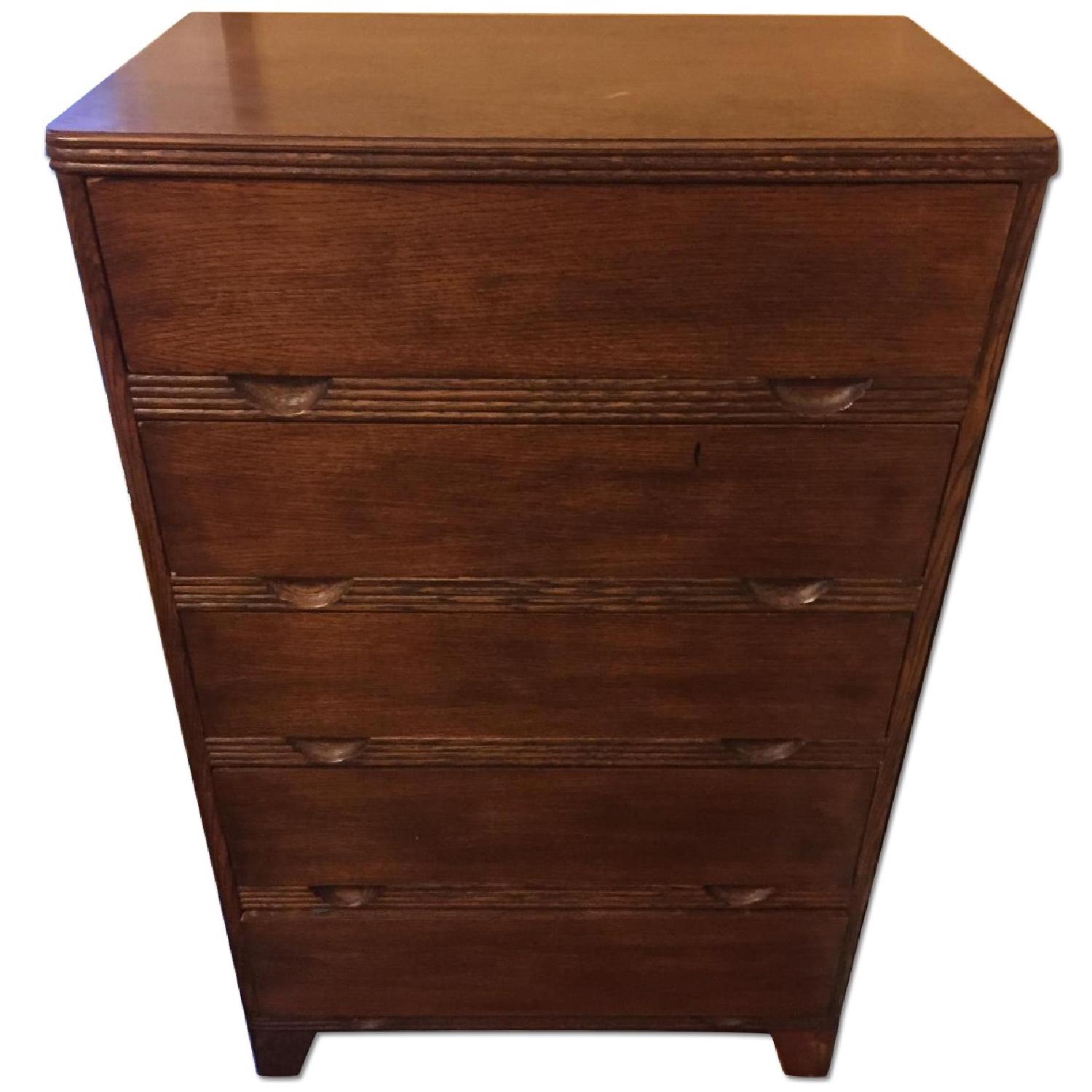 Seller's Notes:Fantastic early 20th-century dresser. Dark wood with 5 draws. The 3rd drawer down is a little taller than the others. All the draws are in excellent condition. There's one chip to the wood. Fortunately, it's at the back towards the bottom. only selling this piece because we're moving to the west coast, very sad to see it go.