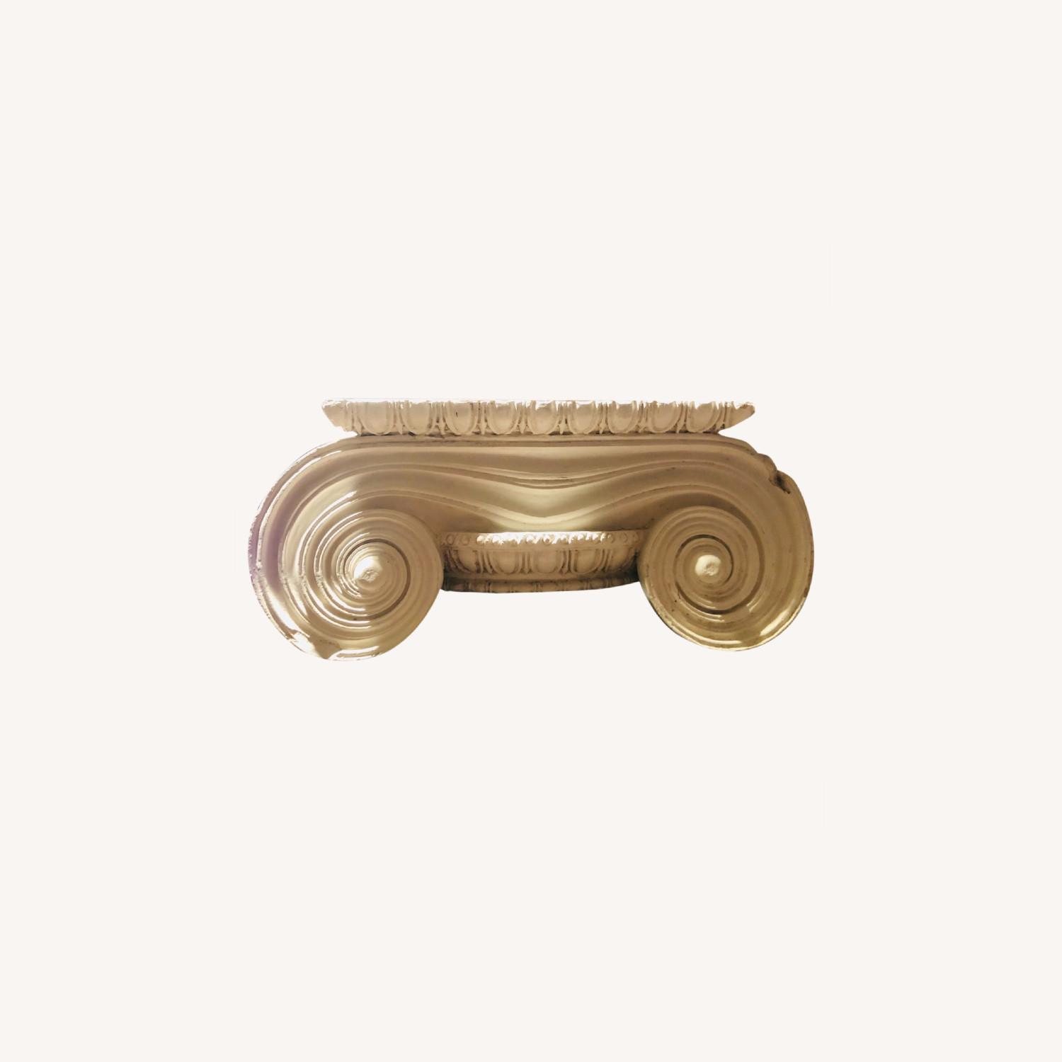 Seller's Notes:Architectural salvage. Shows some wear consistent with images, in stable condition. Salvage from long ago New York City. A column has three parts – mainly the base, shaft, and capital. This is a lovely capital - display it on a coffee table for some philosophical flair - works indoors or outdoors.