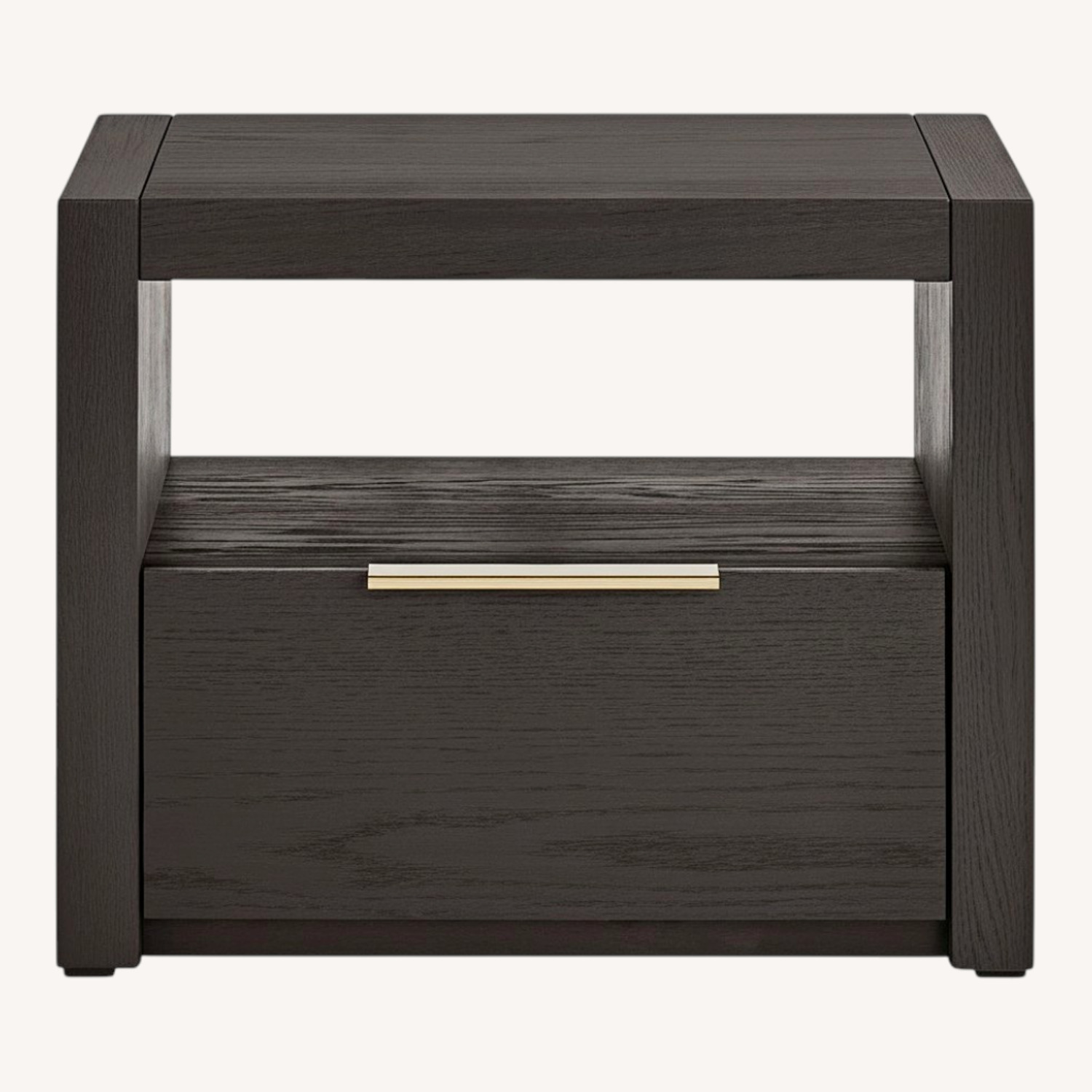 Bringing a soothing ambiance with a touch of understated sophistication, the Easton Park nightstand's organic charm evokes tranquility and relaxation. Showcasing an espresso finish, this contemporary piece features an open shelf for easy accessibility to your nighttime essentials. The drawer is highlighted by a chic gold bar pull and include French dovetail construction, dustproof bottoms and full extension glides for support and longevity.