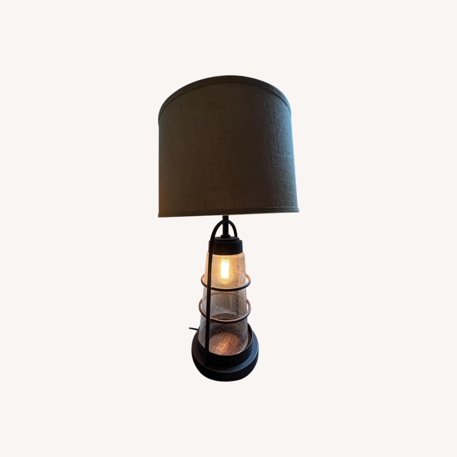 Seller's Notes:Beautiful matching set of Edison bulb lamps with two light settings (one brighter top bulb and one dim edison bulb light). Glass is hand blown with bubbles.