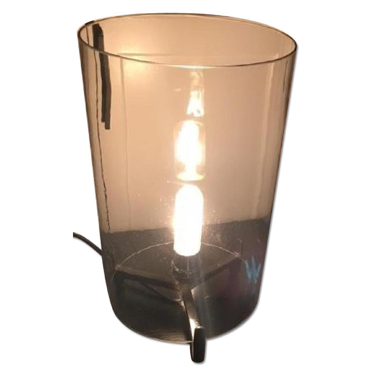Seller's Notes:Edison table lamp with glass cylinder shade and metal base. Recently moved to New York from Chicago and no longer have room for this light.